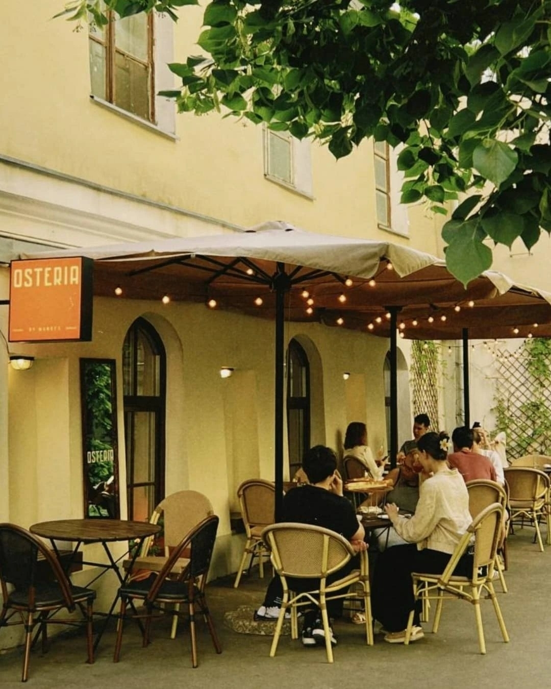 Ужин в Osteria by Mandy’s — отличная идея для тех пар, которые соскучились по Италии и ее колоритным остериям. А еще — по пицце, пасте и тирамису. За кухню уютного ресторанчика во дворах Чистопрудного бульвара отвечает шеф-повар Андрей Зеленков. Внутри небольшого пространства столики на двоих или максимум троих человек, уютно обособленные точечным светом. На пробу рекомендуем взять пиццу с лисичками, вителло тонато, римский салат с курицей или креветками и, конечно, джелато, панакоту и канноли на десерт.