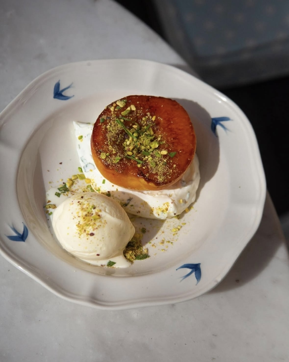 Итало-левантийский ресторан Mina на Малой Никитской улице собрал в себе все самое яркое как от Италии, так и от ближневосточной кухни Ливана. Ведь в меню соседствуют хрустящая пицца на тонком тесте и 10 видов паст с различными намазками, крудо и долмой. Чтобы окунуться в два совершенно разных региона, советуем попробовать аньолини со щечками и трюфелем, осьминог с ндуей и бататом и пиццу «Четыре сыра». А на десерт взять фирменный чай Mina и томленые абрикосы с маскарпоне и грецкими орехами.
