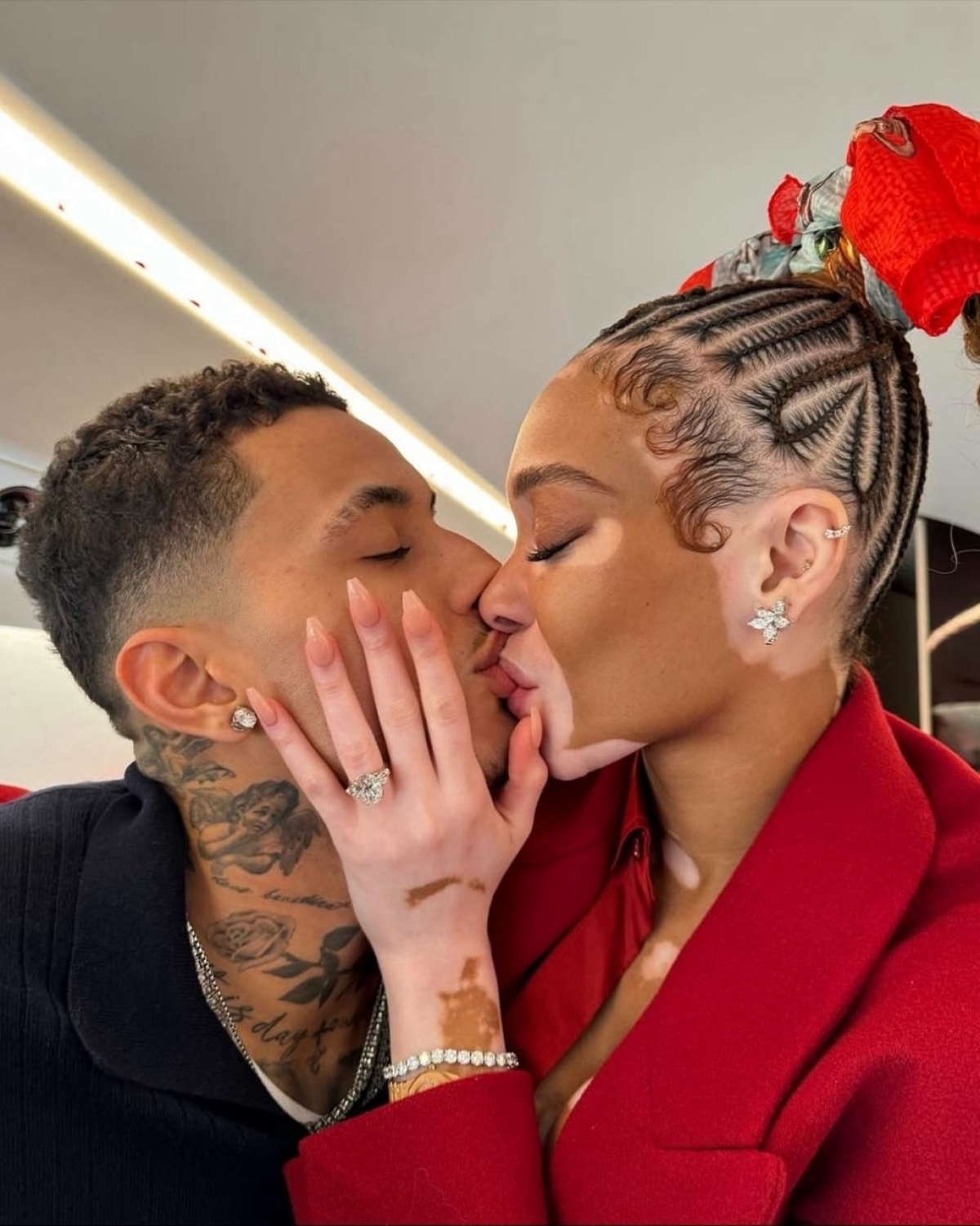 Винни Харлоу и Кайл Кузма начали встречаться в 2020 году после знакомства в интернете. С тех пор их регулярно видели вместе на показах, матчах и совместных поездках, но пара предпочитала не делиться подробностями и редко обсуждала отношения публично. В феврале 2025 года Кайл сделал Винни предложение во время отдыха на Карибах. Это была продуманная романтическая сцена — с розами, стихотворением и кольцом с бриллиантом 8,5 карат, дизайн которого Кузма разработал сам. Дата свадьбы пока не объявлена, но Винни уже намекала в интервью Vogue на островной формат и танцы до утра.