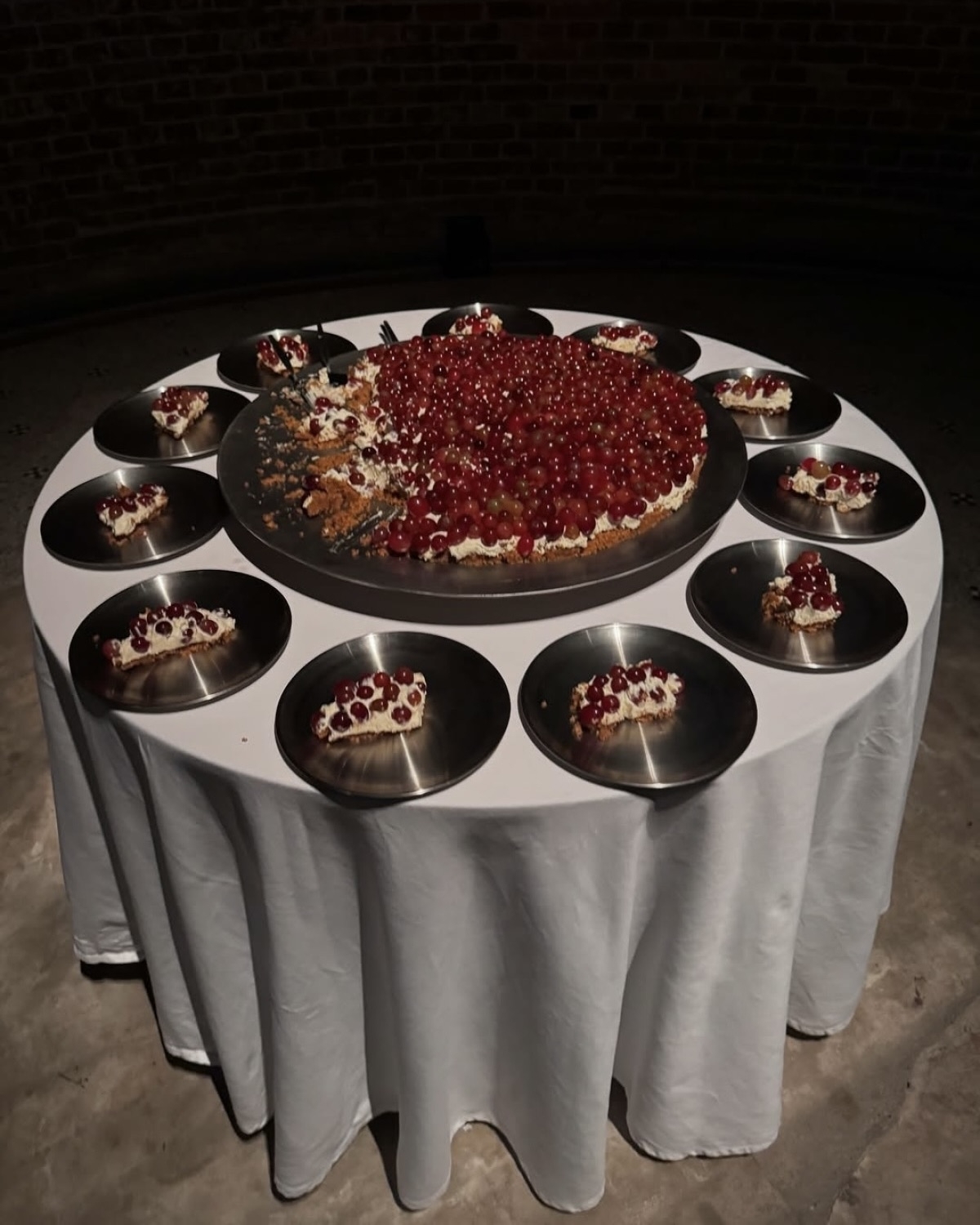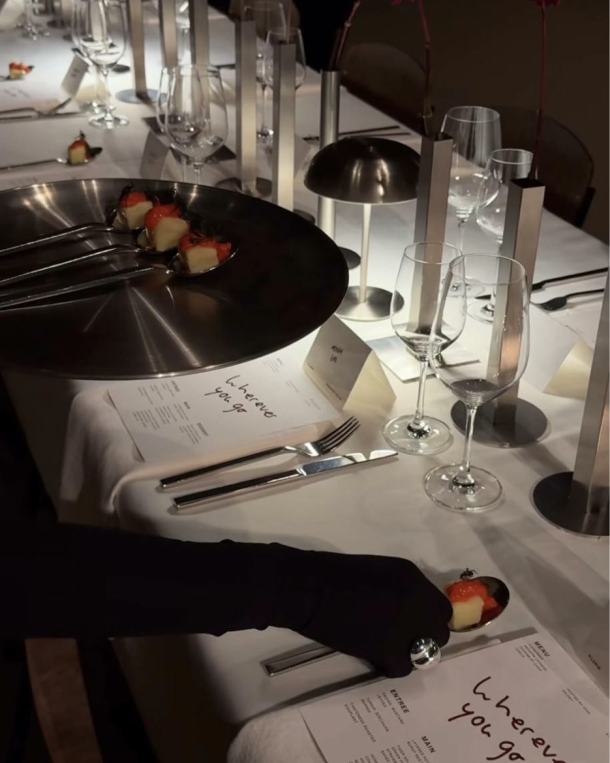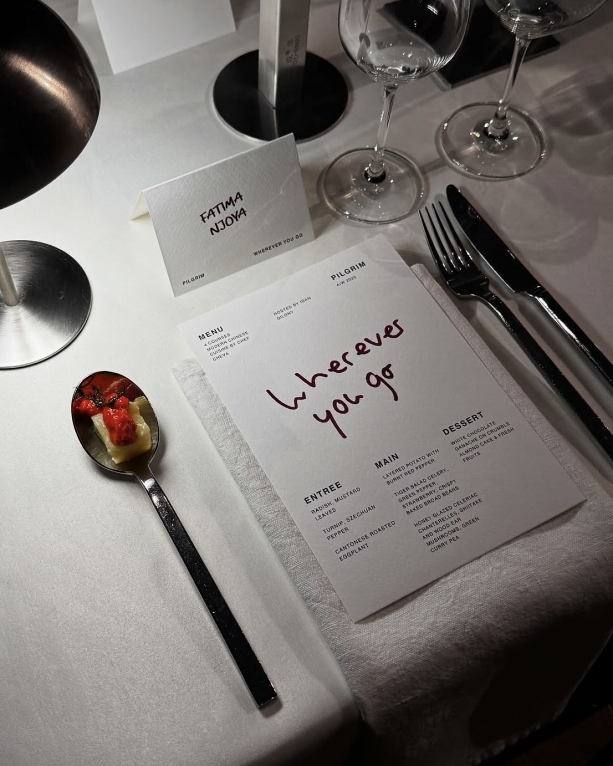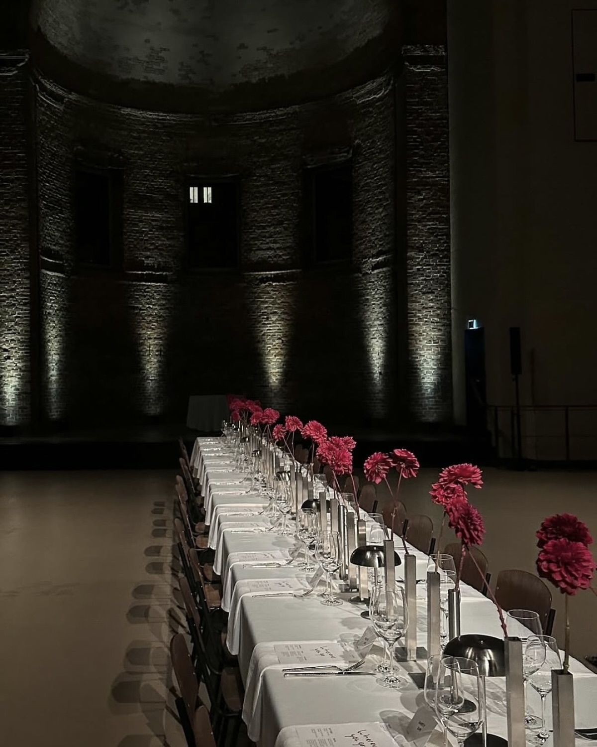 Идан Джилони — мастер по части иммерсивных ужинов. На этот раз фуд-дизайнер хостил ивент для датского ювелирного бренда Pilgrim Jewellery. Локацией выбрали недействующую кирху в центре Берлина. Посреди зала поставили длинный стол, который украсили бордовыми хризантемами в геометрических металлических вазах. На десерт — ягодный тарт, который готовился прямо во время ужина.