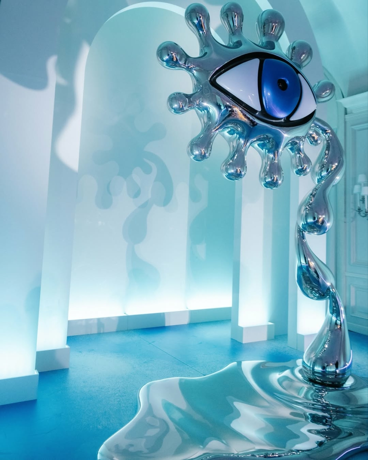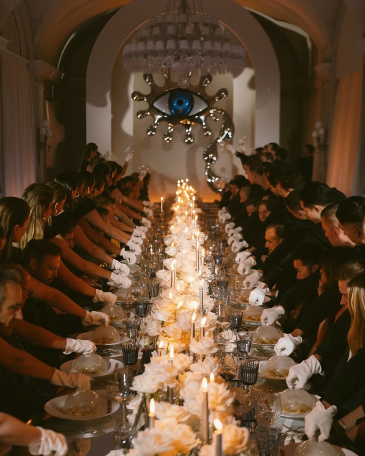 Завершение ежегодной художественной ярмарки Art Basel отпраздновали изысканным ужином в Four Seasons George V. Зеркальный декор продумали в коллаборации с современной художницей Шарлоттой Колберт. Отсюда — большая футуристичная инсталляция в форме глаза, вдохновленная ее скульптурой. Фокус на стеклянных деталях сделали благодаря игре со светом — технической детали, которую нельзя недооценивать.