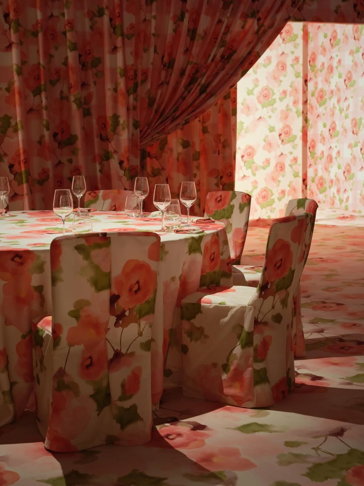 Тем, кто устал от минималистичного сеттинга с прямоугольными столами, посвящается: креативное бюро We Are Ona и архитектор Индия Махдави организовали буйствующий красками поп-ап в Париже. Потолок, столы, текстиль — абсолютно каждый предмет пространства окрасился в цветочный принт. По задумке создателей, поп-ап должен был добавить красок в жизнь каждого его посетителя — определенно получилось.
