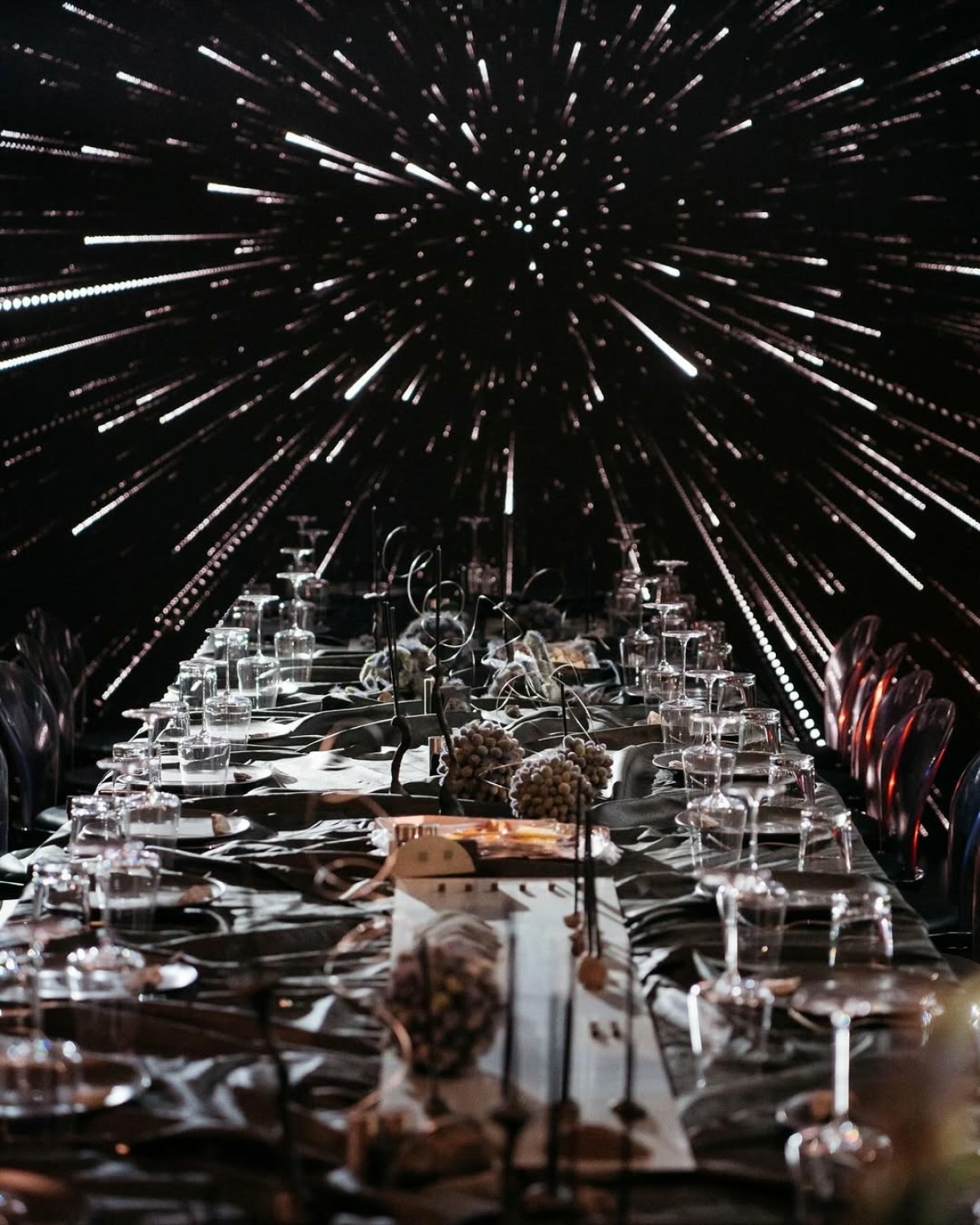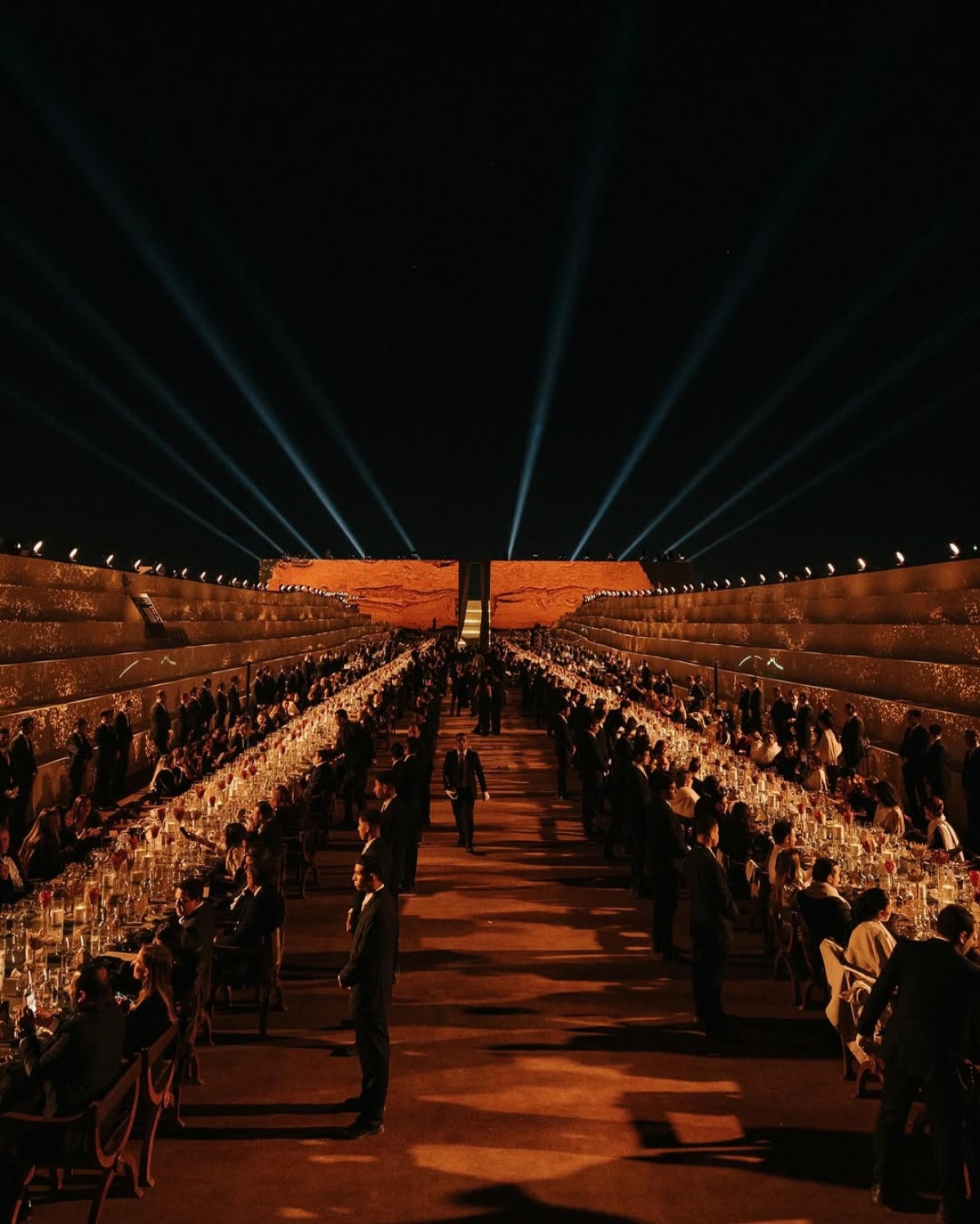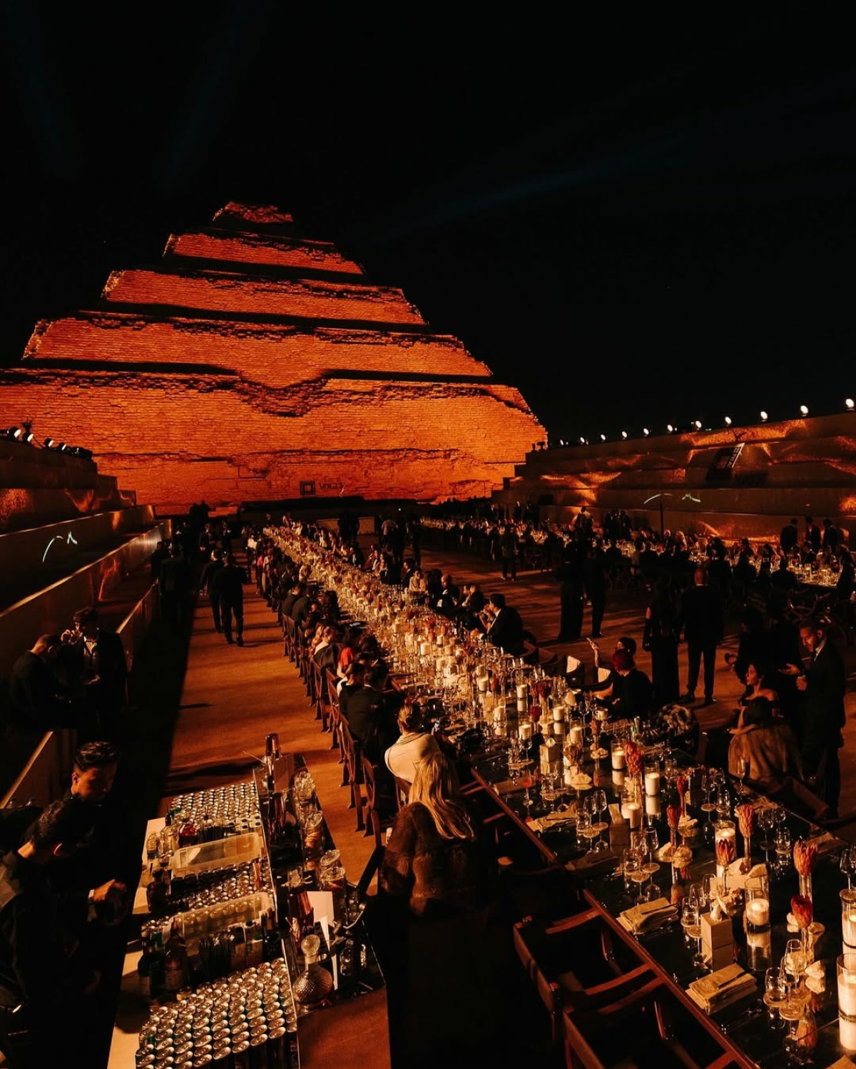 Сказка об одной из тысячи арабских ночей визуализировалась в иммерсивном ужине Vogue Arabia и девелопера Qatari Diar Egypt. Организацией занималось агентство We Are Ona, которое снова удивило концепцией: игра со светом и проекциями на фоне ступенчатой пирамиды в Саккаре и стеклянные поверхности, отражающие масштаб вечера — огромная работа команды, поражающая через экран.