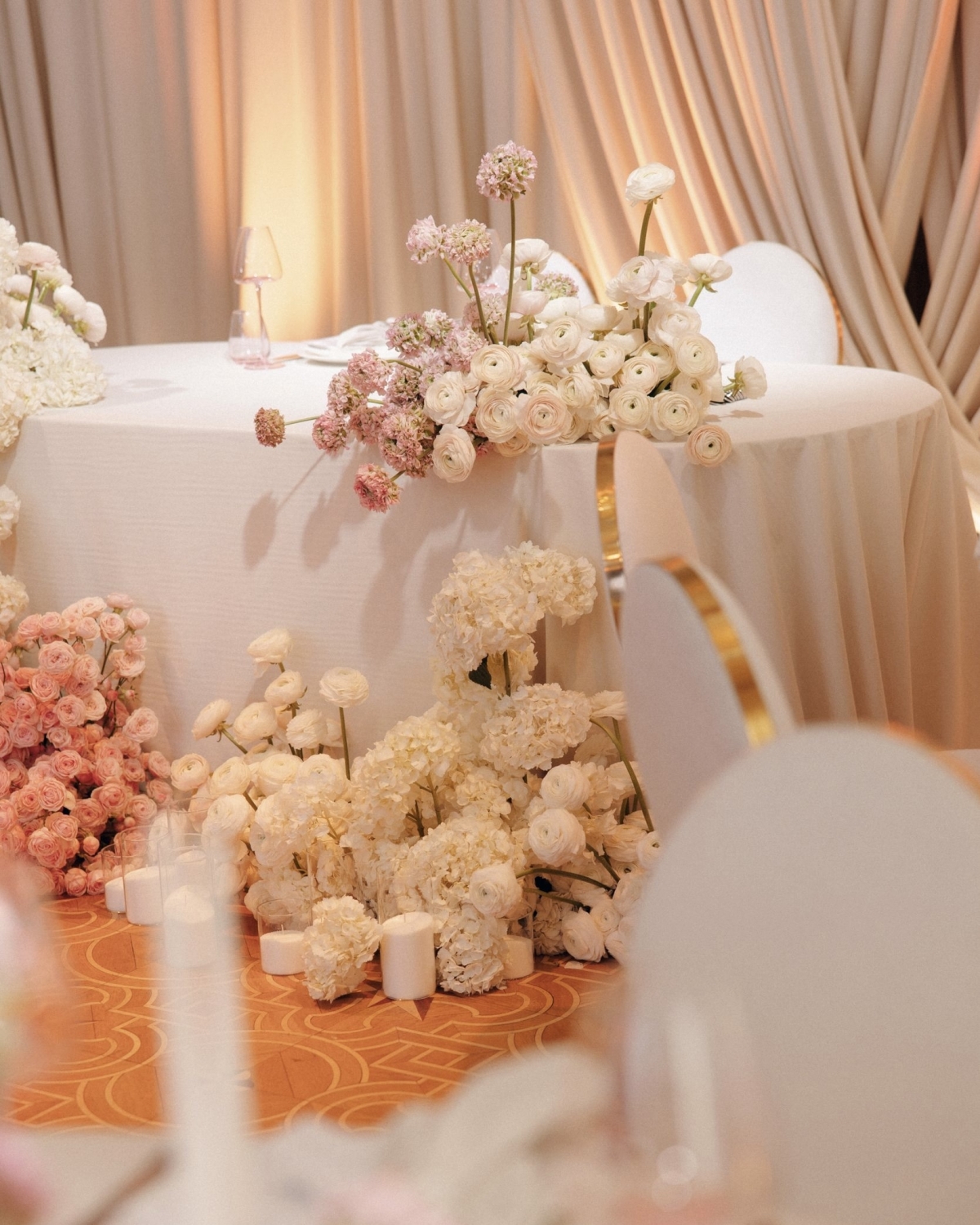 Поэтому основу визуала составили архитектурные формы, актуальная флористика и работа со светом. Все решения были выстроены так, чтобы история проявлялась через детали, а не через очевидные символы. Это позволило сохранить ощущение элегантности и не перегрузить пространство.