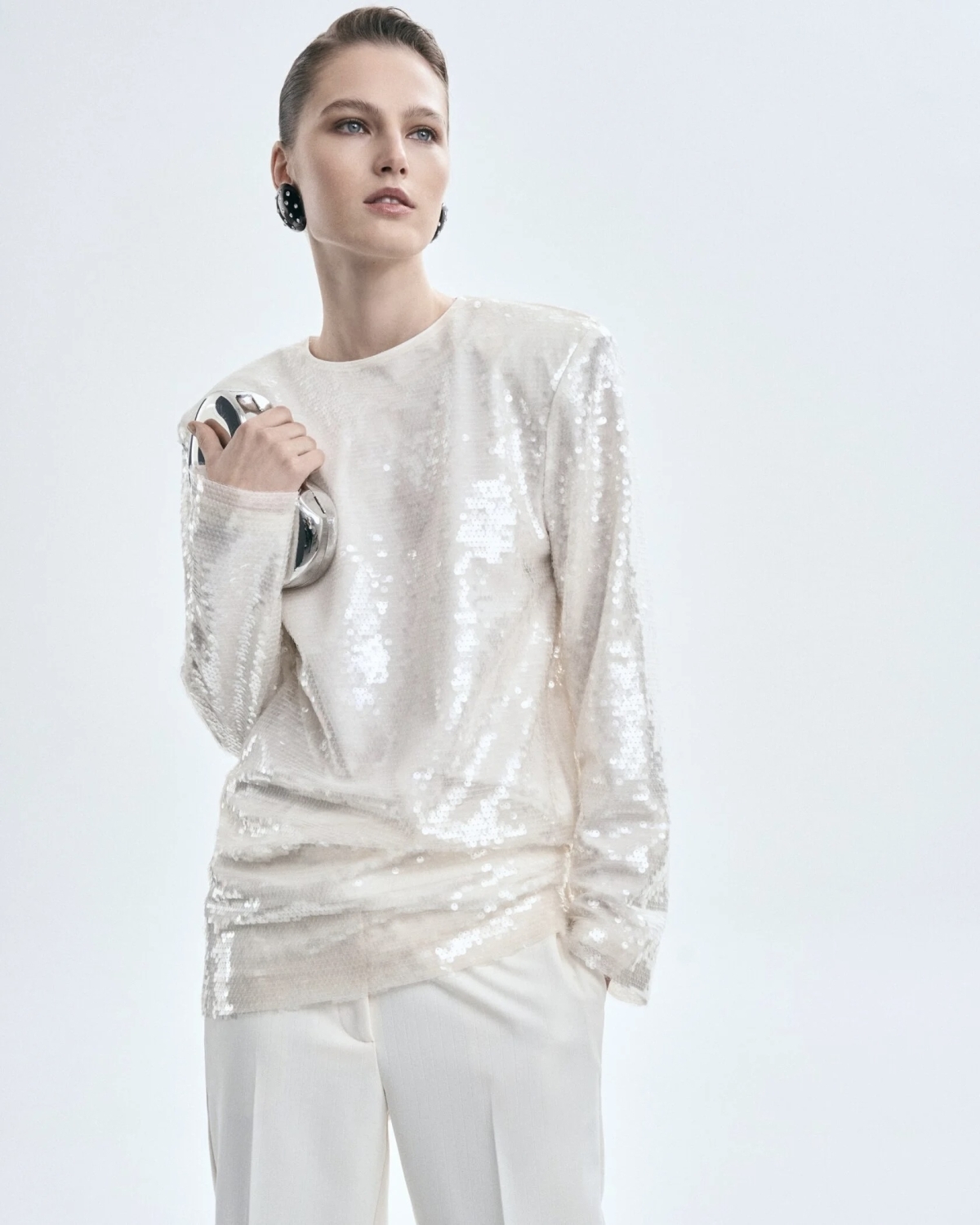 Все блестящее, переливающееся, в пайетках — для тех, кто планирует встретить и проводить субботу на веселой ноте. Настроение сделают запоминающиеся аксессуары вроде серебристого клатча и абсолютно роскошного кольца Hugo Kreit из бусин. Еще — юбки, платья и даже комбинезоны с вечериночным настроением.