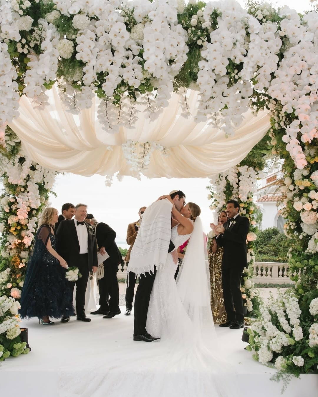 Свои отношения София Ричи и Эллиот Грейндж официально подтвердили в 2021 году. Уже через год модель показала кольцо с внушительным бриллиантом изумрудной огранки. Свадьба прошла в 2023 году на Лазурном берегу. На уикенд пара останавливалась в роскошном отеле Hotel du Cap-Eden-Roc в Антибе, где в свое время жили Фрэнсис Скотт Фицджеральд, Эрнест Хемингуэй и актриса Марлен Дитрих. Во время торжества невеста сменила три свадебных образа от Chanel. Самое запоминающееся из них — фактурное мини с камелией, похожее на то, что надевала Клаудия Шиффер во время одного из показов модного дома в 1993 году. Для невесты дизайнеры воссоздали его копию. Перед свадьбой София Ричи приняла иудаизм.