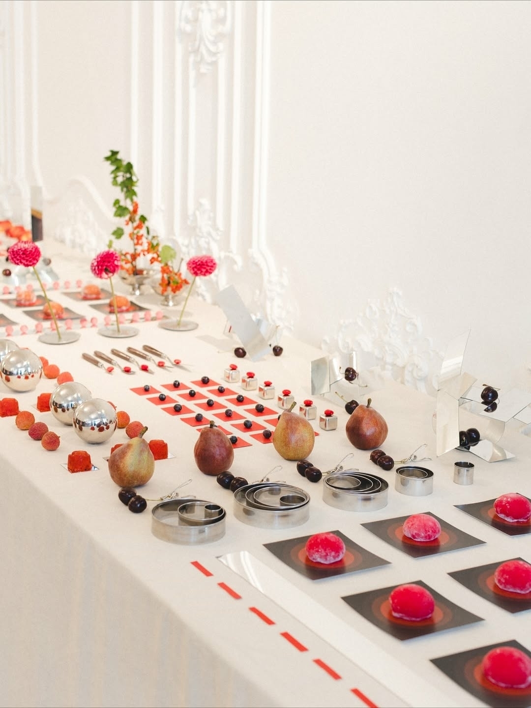 Мы не будем украшать стол нежными морепродуктами — это гастрономия в чистом виде, их лучше не превращать в декорации. Или, если мусс убежит со сцены раньше времени, от красоты не останется и следа. Есть множество продуктов, которые идеально сочетают в себе красоту и съедобность: фрукты, ягоды, орехи, выпечка и десерты — с ними мы работаем с удовольствием. Но в любом случае, если что-то идет не так, у нас всегда есть замена или запасной план.