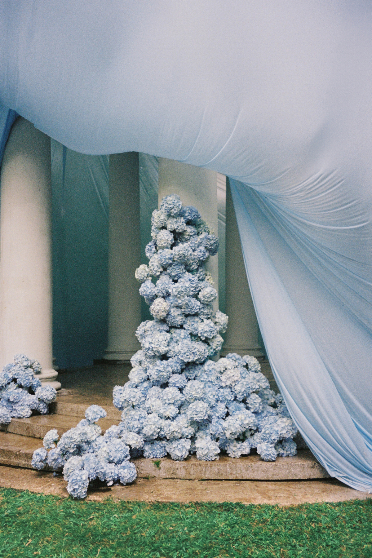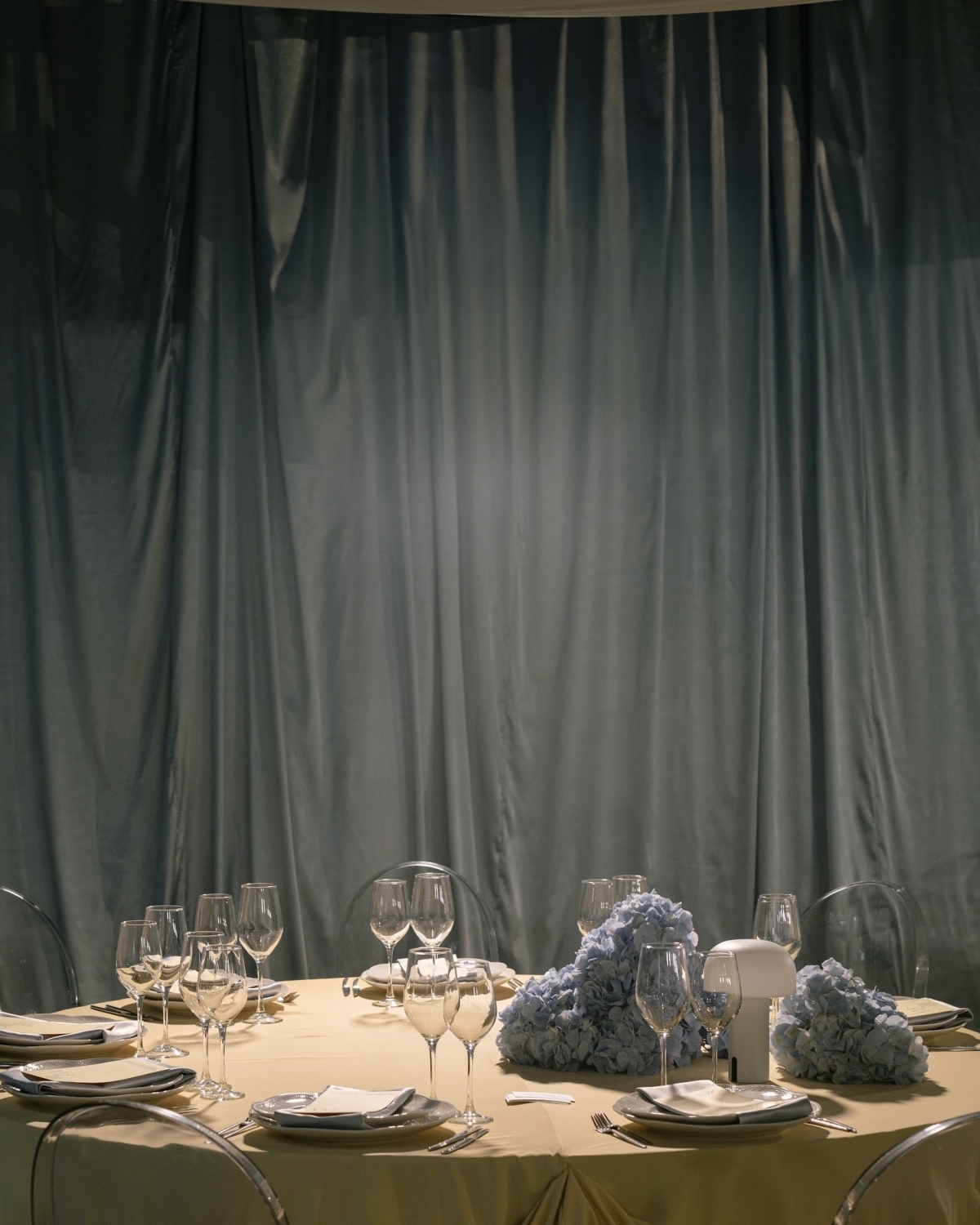 Ротонда стала ключевым элементом этой идеи. Мы закрыли ее тканью, чтобы она напоминала облако — мягкое, воздушное, будто надутый пузырь или купол. Это не про архитектуру, а про ощущение. Как будто ты вошел внутрь самого сновидения.