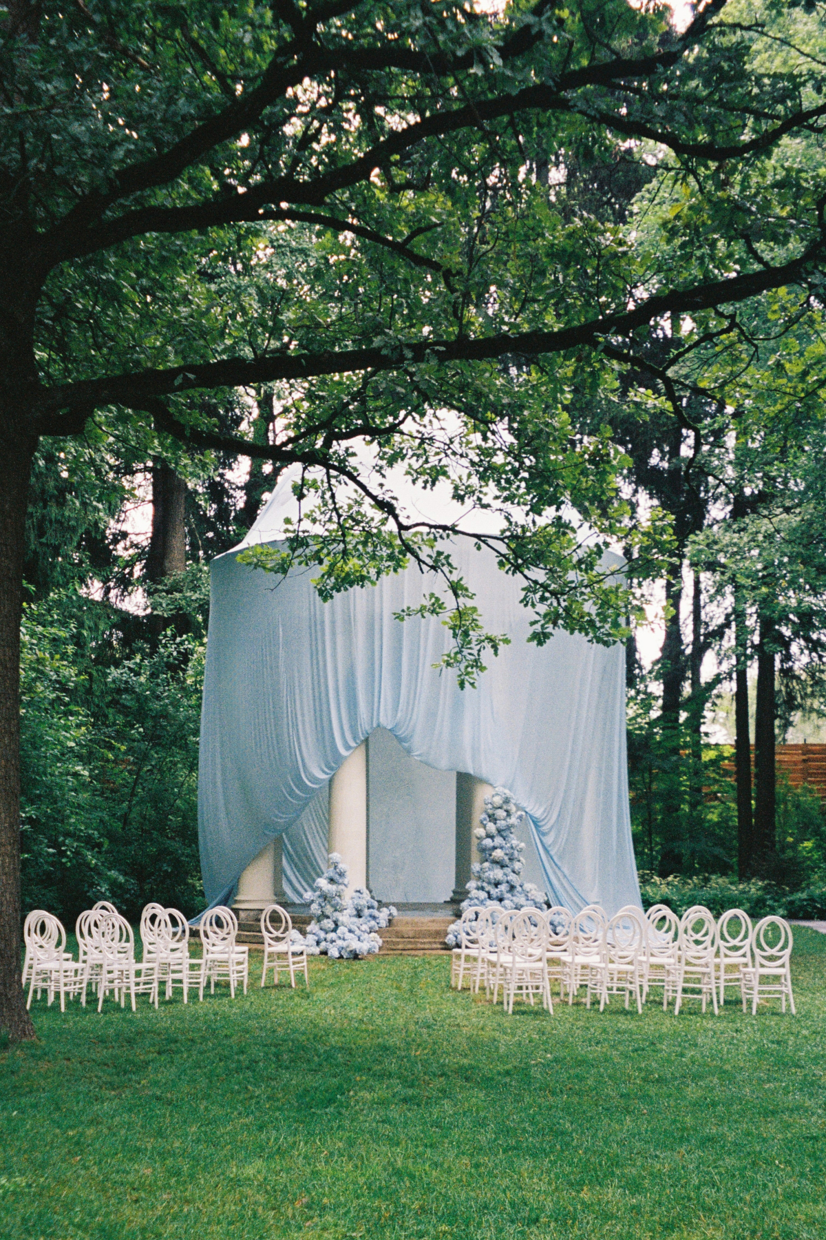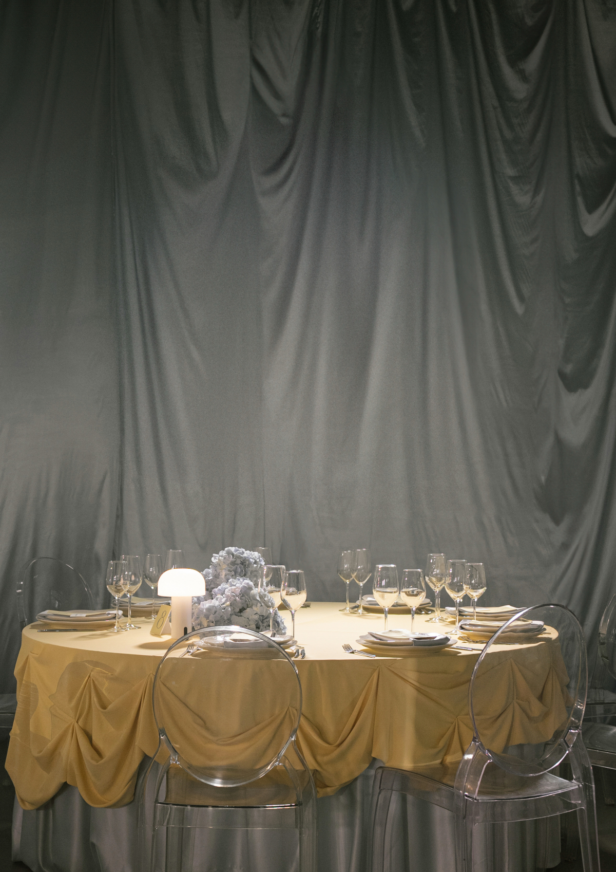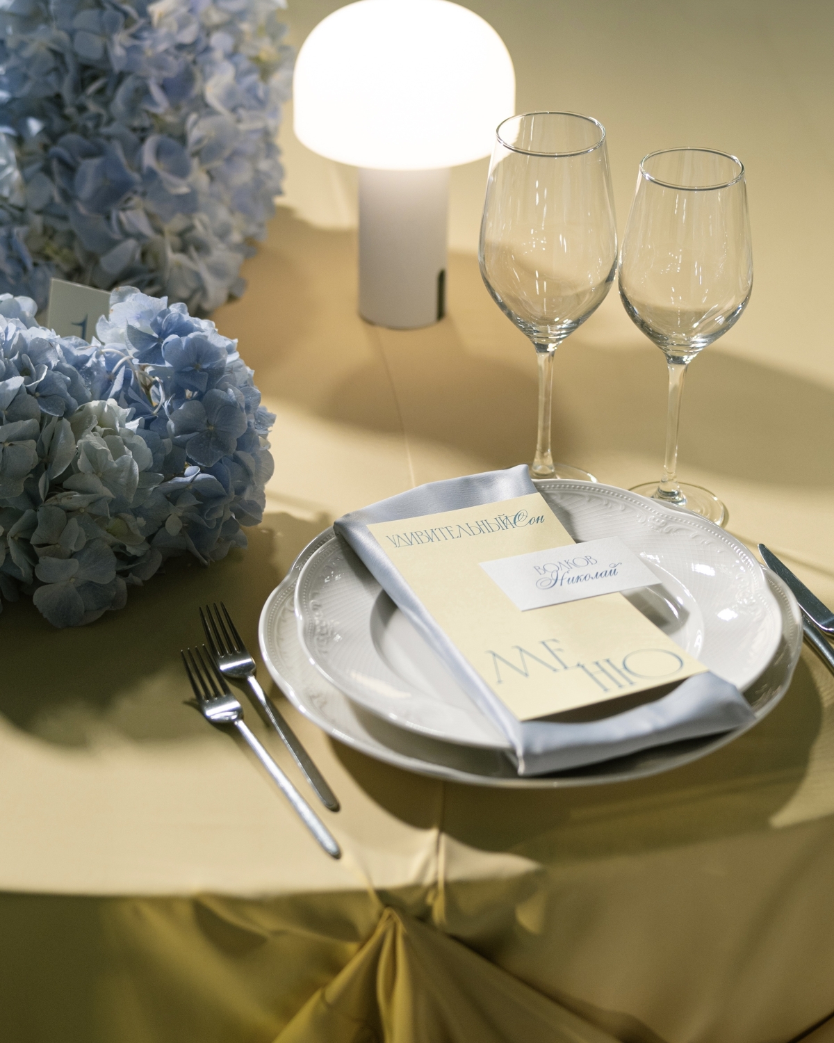 Вдохновившись этой философией, мы создали концепцию свадьбы под названием «Удивительный сон». В этом проекте нет четких линий и строгой геометрии. Все будто слегка размыто, нереально, как в сновидении. Бокалы здесь «левитируют», ткани двигаются от малейшего ветра, все обволакивает и словно ускользает.