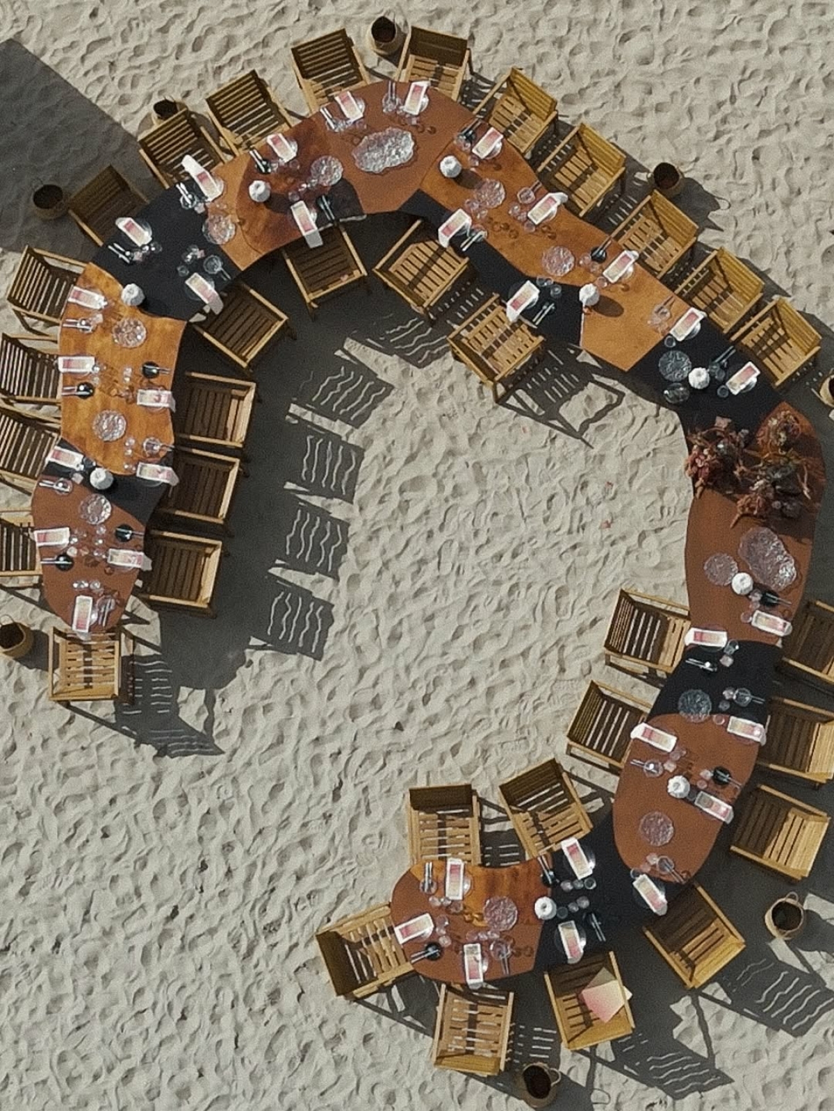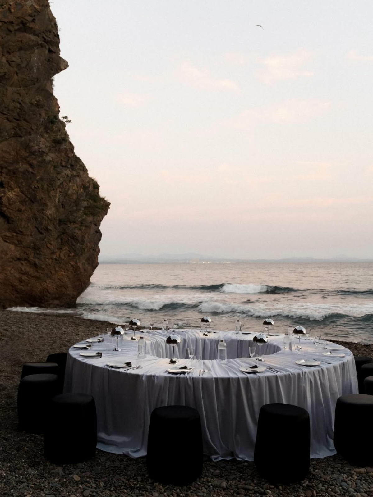 Церемония на фоне скал или темной гальки требует минимализма — чтобы не перегружать пространство. Зато гастрономическая часть может стать сильным акцентом: крабы, гребешки, морские ежи — локальные продукты здесь действительно «из воды на стол».