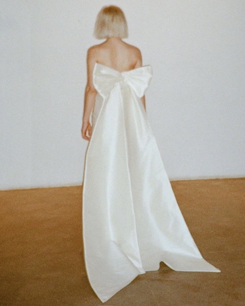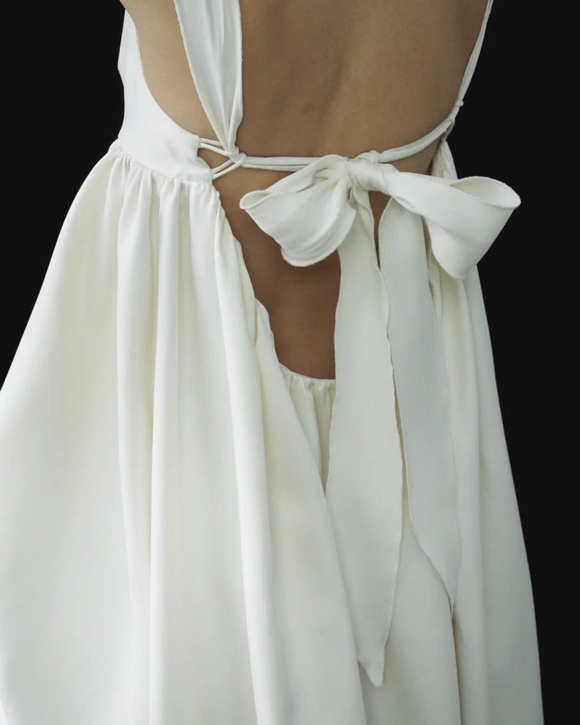 Лаконичные модели вне времени — это про My812. Бренд ежегодно выпускает свою свадебную коллекцию, в которую входят фактурные платья из натурального шелка, без акцентной отделки, но с деликатными деталями в виде разрезов и завязок. И главная фишка образов для невест My812 — сочетание эстетики и комфорта за счет свободных и чуть приталенных силуэтов.