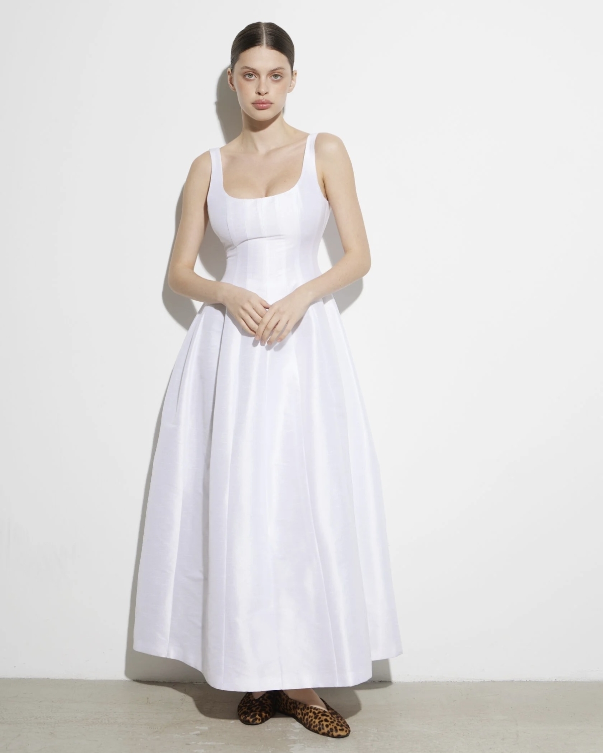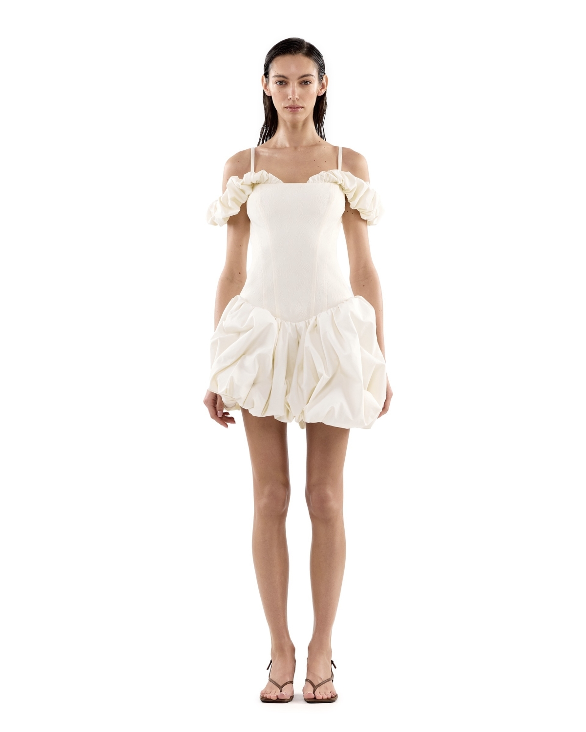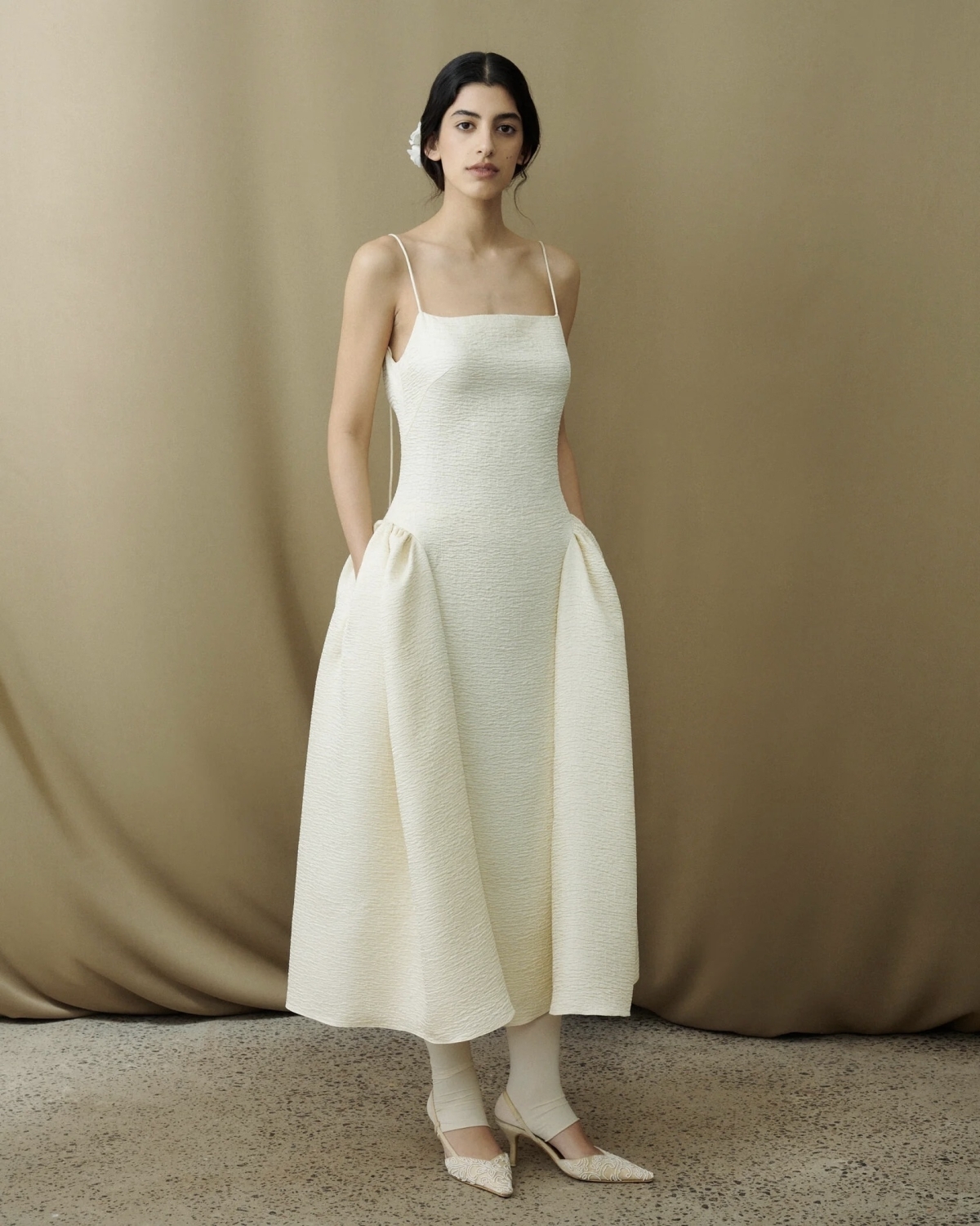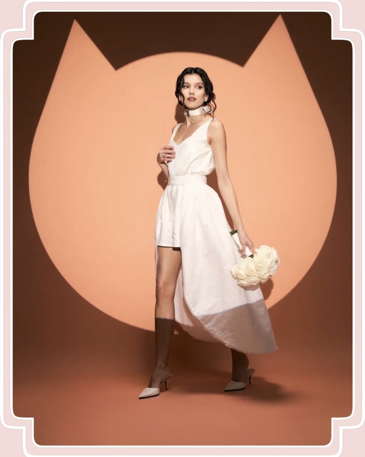 Платья MAY OF MAY отлично подойдут как для камерной свадьбы в черте города, так и для масштабного ужина на природе. Виной всему универсальные силуэты и минималистичный дизайн (даже несмотря на акцентные детали в виде перьев и бантов). Модели из коллекции Bridal шьются по индивидуальным меркам, а образы из регулярных коллекций доступны сразу в нескольких размерах в шоуруме бренда. Но если этого мало, то вы всегда можете создать свадебное платье с нуля вместе с дизайнерами MAY OF MAY.