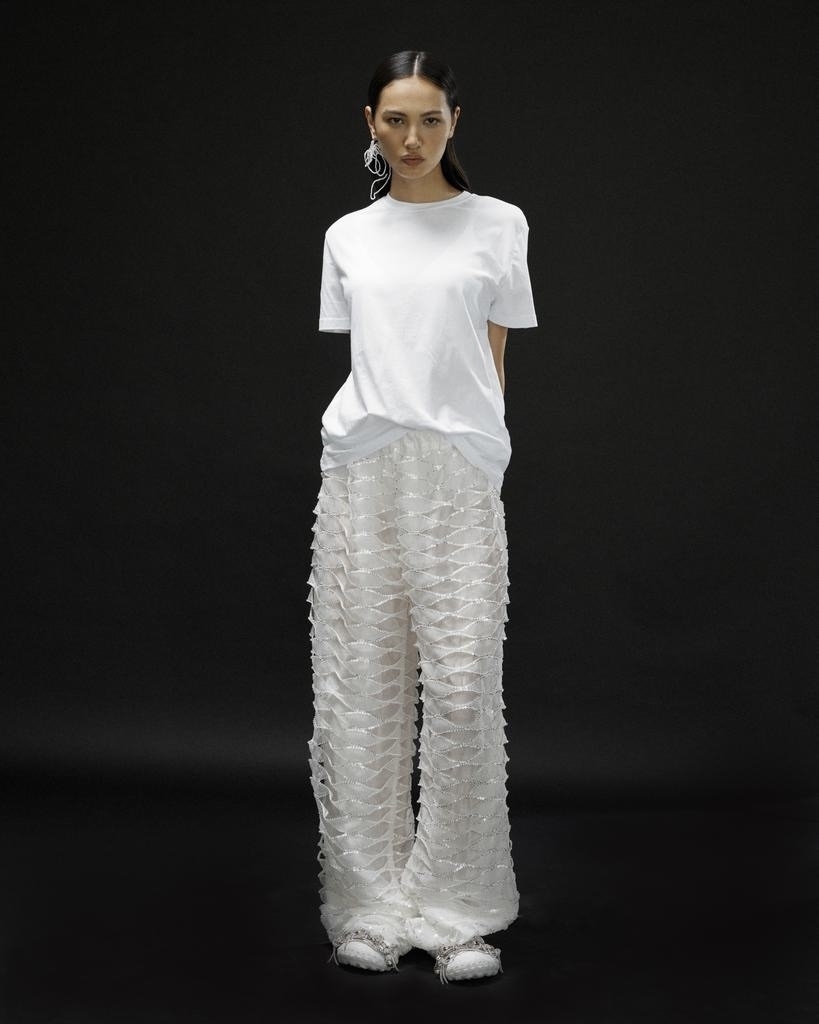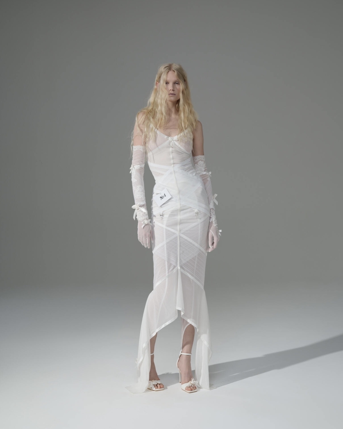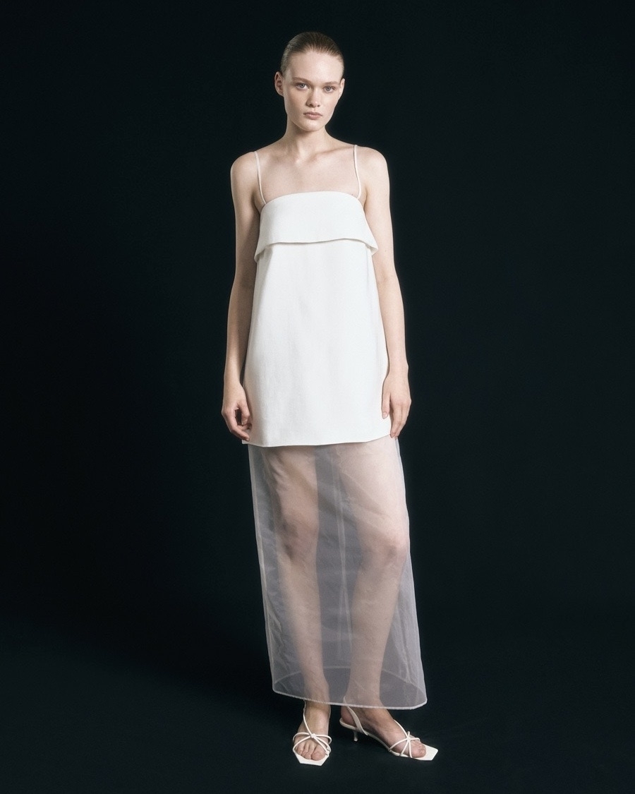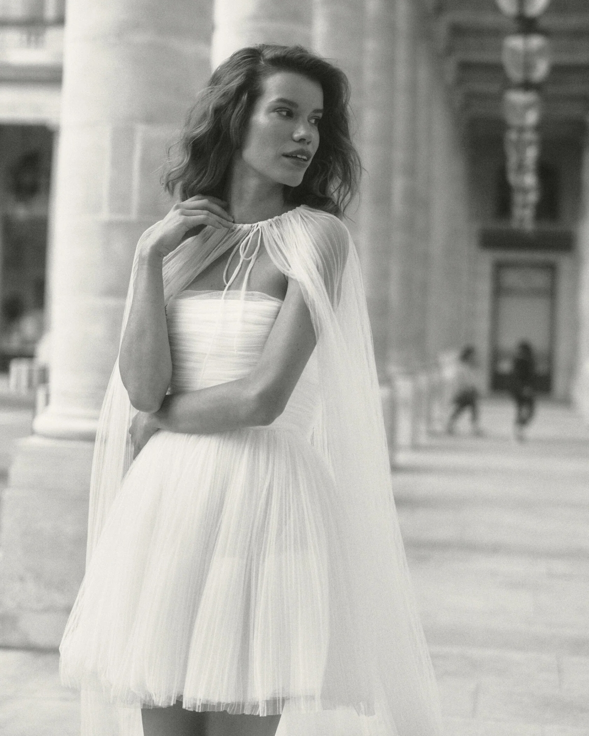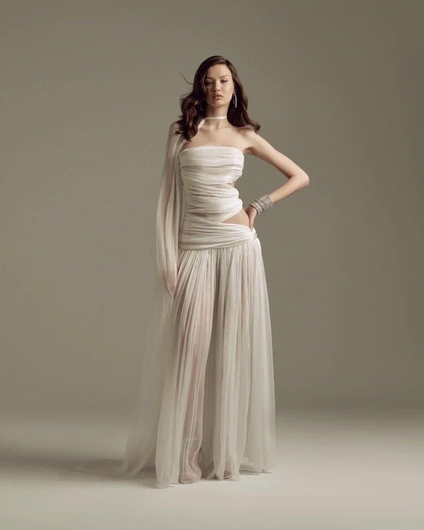 В сезоне 2025 у Gate31 вышла первая свадебная коллекция PRIORITY. В нее вошли не только белые, но и черные образы для невест, которые отличаются лаконичностью и присущими бренду графичными силуэтами. Что важно — платья, топы и юбки выполнены преимущественно из прозрачных тканей. Это делает образы более чистыми и невесомыми — очень в характере большинства невест.