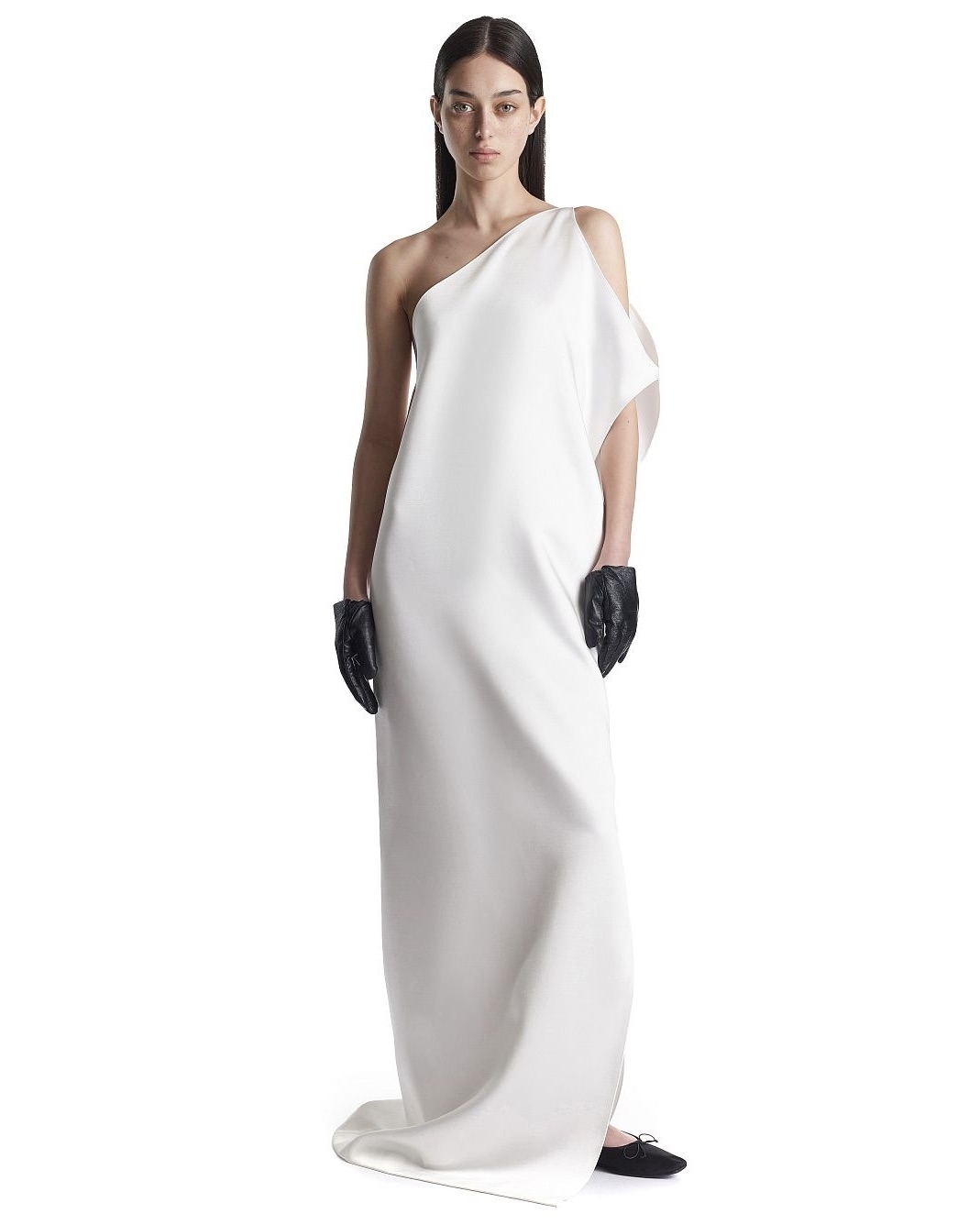 У авангардного российского бренда всегда найдутся платья для невест. Что-то доступно еще из прошлых коллекций, а некоторые модели появляются только в начале сезона. Модели довольно простые, но у каждой есть своя особенная фишка. Например, асимметричные рукава, рисунок, небанальный крой или трансформирующиеся детали, которые будет удобно менять в течение вечера.
