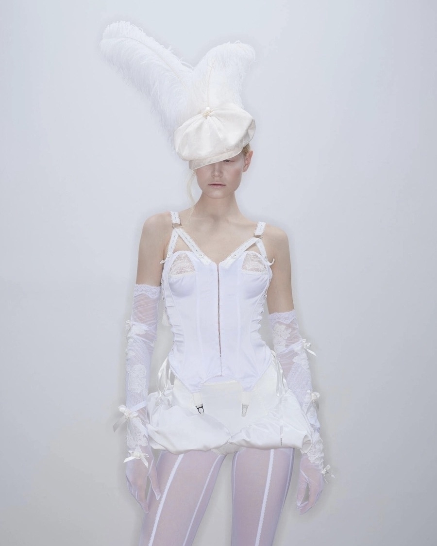 Свадебная линейка DANIIL ANTSIFEROV создана эпатировать. В коллекции представлены свойственные бренду исторические корсеты, асимметричные комбинации, экстравагантные аксессуары, которые добавят любому образу немного чудинки. Здесь не про минимализм, но про уместный китч и обилие отделки, поэтому в одном образе могут гармонично сочетаться стразы, бусины, банты, перья и кружево.