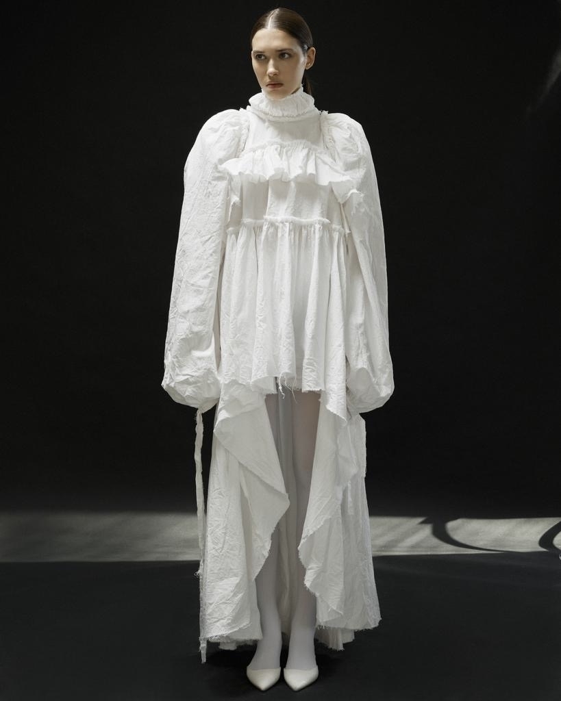 Бренд с говорящим названием создает авангардные предметы гардероба, которые изготавливаются из редких винтажных тканей 1980–1990-х годов по историческим лекалам. Здесь и романтичные платья с рукавами-фонариками из жаккарда или французского кружева, утонченные блузы и акцентная фата. Каждая модель также доступна по индивидуальному пошиву в другой, представленной у бренда, ткани.