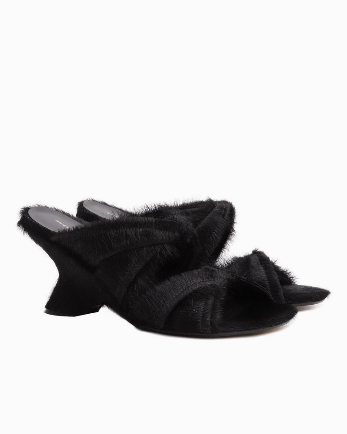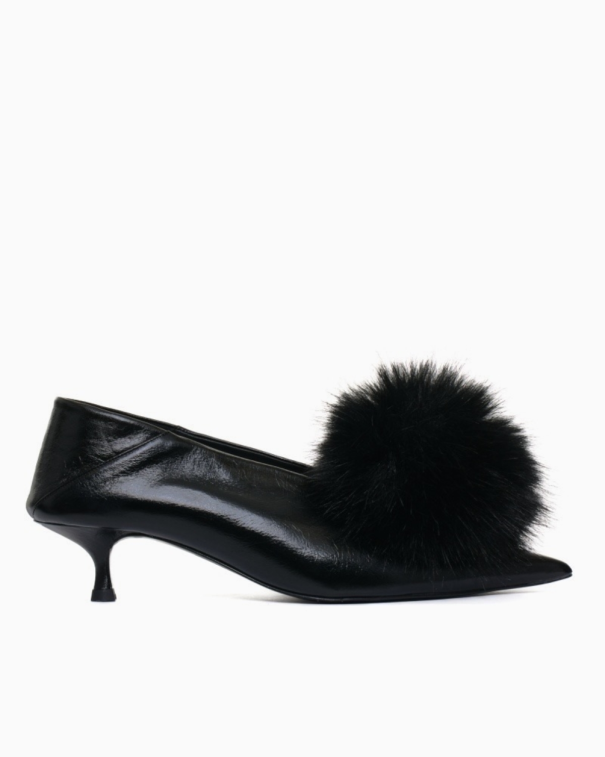 Лодочки из меха Askent, слингбэки с кружевом Wysh