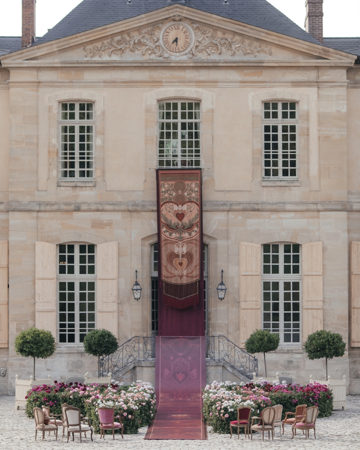 Париж — один из любимых городов жениха и невесты. И по-прежнему одно из самых романтических мест на Земле. Идея играть свадьбу в городе любви или его окрестностях всегда кажется хорошим, вдохновляющим началом. К тому же во Франции сохранилось много исторических замков с доступом для мероприятий. А нам нужен был именно такой: живой, кинематографичный антураж. Пара выбрала Château de Villette, его еще называют маленьким Версалем. А мы вместе с организаторами — агентством JR Wedding — придумали, как использовать эту величественную фактуру, чтобы создать впечатляющий путь гостя.