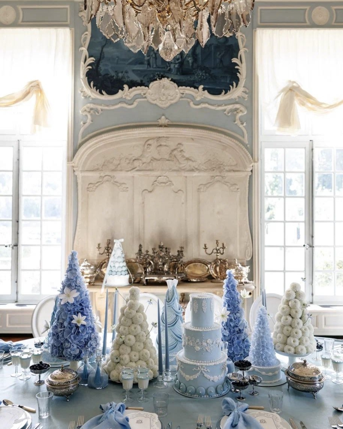 В смене дней, сюжетов и соответствующей атмосферы мы использовали прием total color. Предсвадебный ужин был полностью решен в бордовой гамме. Все — от карточек меню до портьер — представало в одном глубоком оттенке. Завтрак главного дня проходил в голубой гостиной замка, и мы просто взяли цвет пространства и перенесли его в акценты, сервировку и даже оформление самих блюд. Мы работали с командой знаменитого мишленовского шефа Владимира Мухина, а за декор отвечала студия About You Decor Нади Скриповой и Анны Рунге. И спасибо коллегам за то, что так талантливо воплощали и подхватывали любые идеи. Наблюдать за работой профессионалов и разделять с ними такой опыт — большая удача.