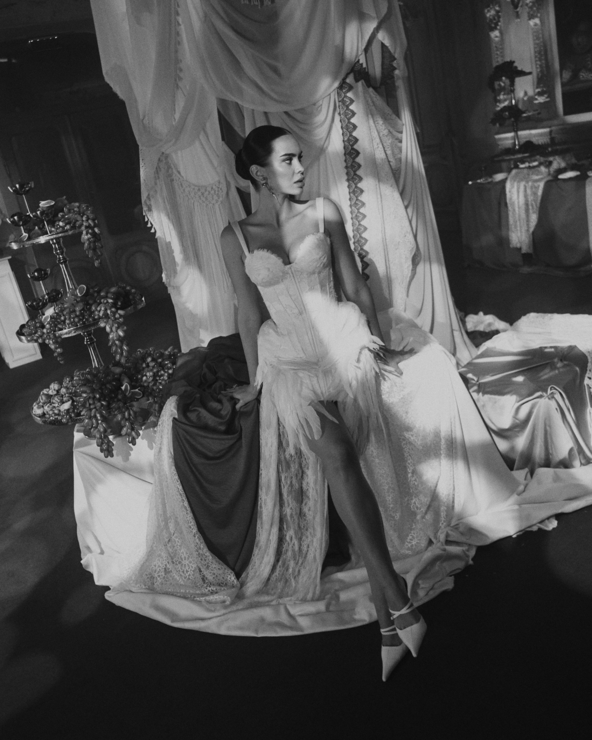 Стиль — понятие субъективное. И чтобы быть более экологичными, в этом году мы захотели шагнуть дальше и показать образы невест сезона-2025 под другим углом. Так, наш выбор пал на самые небанальные, которые не вписываются в рамки, заставляют переосмыслять традиции и раскрывают характер лучше любых слов. Здесь образ — модное высказывание, и часто за ним стоит целая команда (к слову, о стилистах, которые работают с невестами, мы уже рассказывали). А свадебный контент — симбиоз репортажа и хай-фешен съемки.