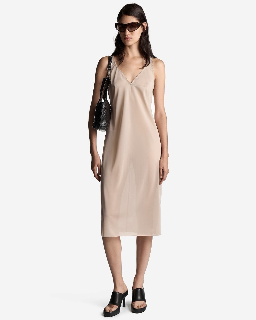 Укротить просвечивающие вещи можно и однослойными вещами — при помощи декора. В прощальной коллекции Марии Грации Кьюри для Dior отвлекающим от прозрачности маневром стали ажурные цветы на платье, у Jacquemus эту роль на себя взяла техника кроше, у Fendi — вышивка кристаллами. Ваш ход?