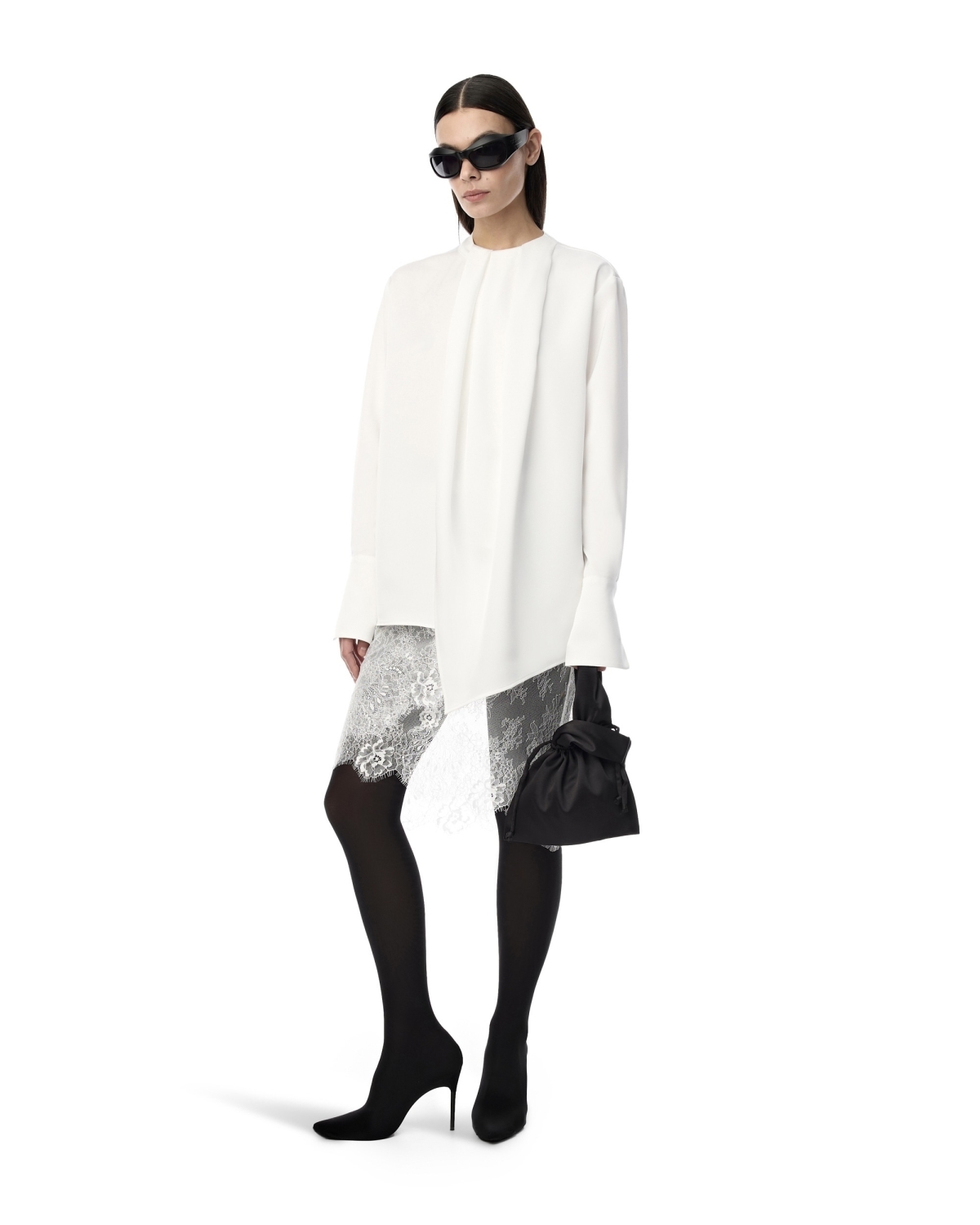 Задачу деликатно обыграть прозрачные вещи ловко решили дизайнеры от Dior до Altuzarra. Запоминаем их универсальную формулу: взять просвечивающий легкий низ, оголив ноги, и добавить к нему удлиненный верх из плотных материалов. Если переложить знания на образ невесты, то получим примеры стайлинга Kenzo и Марии Грации Кьюри: к невесомой юбке или брюкам обязательно попросится объемный жакет либо блуза, которые прикроют все важные места.