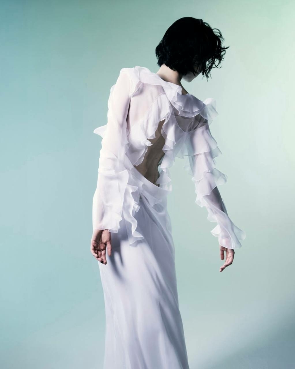 Если наложить прозрачную ткань друг на друга, то случится фокус, подобный красным трусам под белой одеждой: вещи станут гораздо менее просвечивающими. О хитрости узнали и уже ею воспользовались Jacquemus, Rowen Rose, Alberta Ferretti. Следом идут летние невесты, для которых такая многослойность не будет в тягость и станет выходом в жаркий день свадьбы.