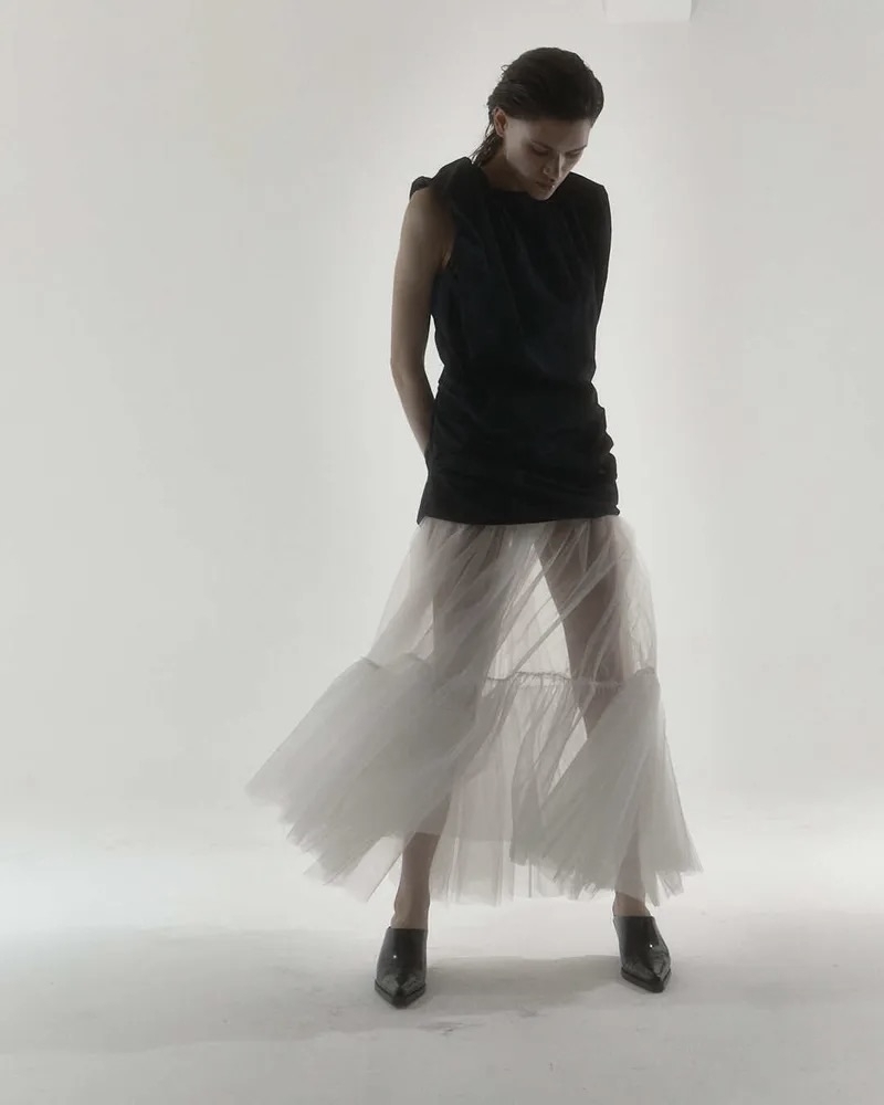 Юбка с бантом Muus, платье с рельефными вставками из полупрозрачного тюля Tatyana Kochnova Atelier