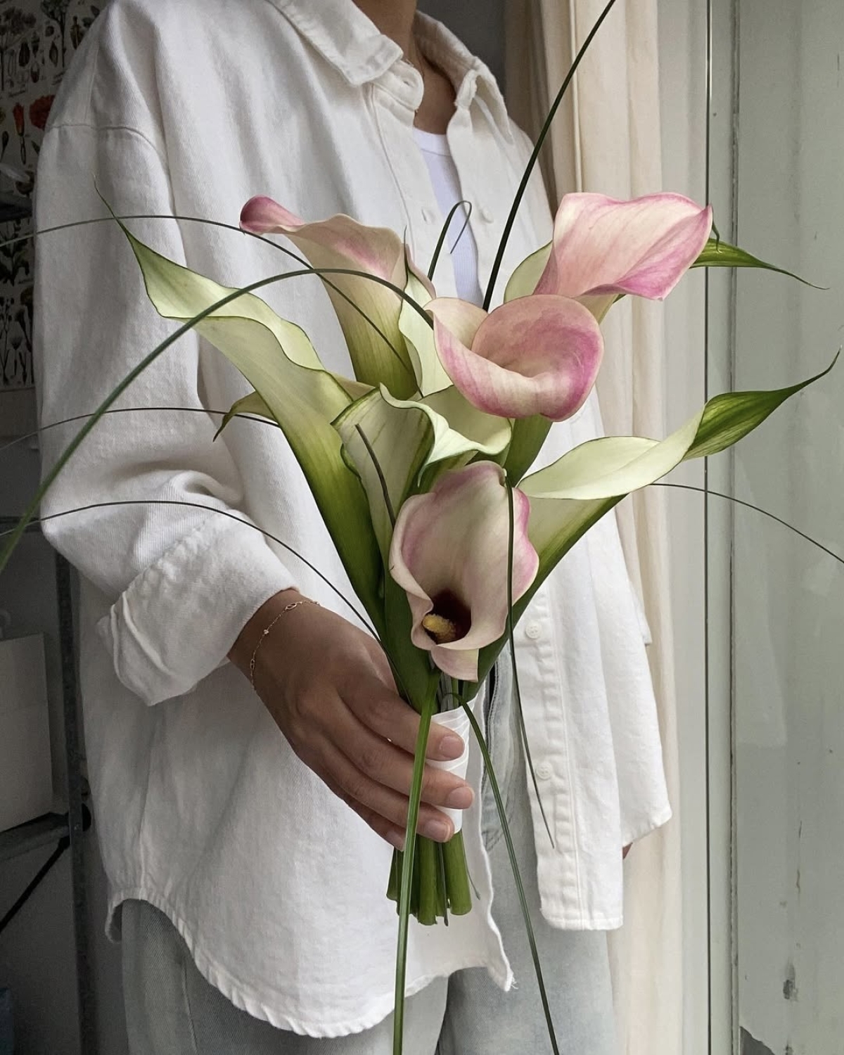 Далее по списку — состав букетов. Чуть выше мы уже рассказали о важности сезонности, но не упомянули, что для живучести почти всех цветов нужны низкие температуры или плотные фактуры, как у орхидей или калл. Нежные мускари или гортензии быстро вянут без воды, а долгое нахождение на жаре может попросту испортить букет.