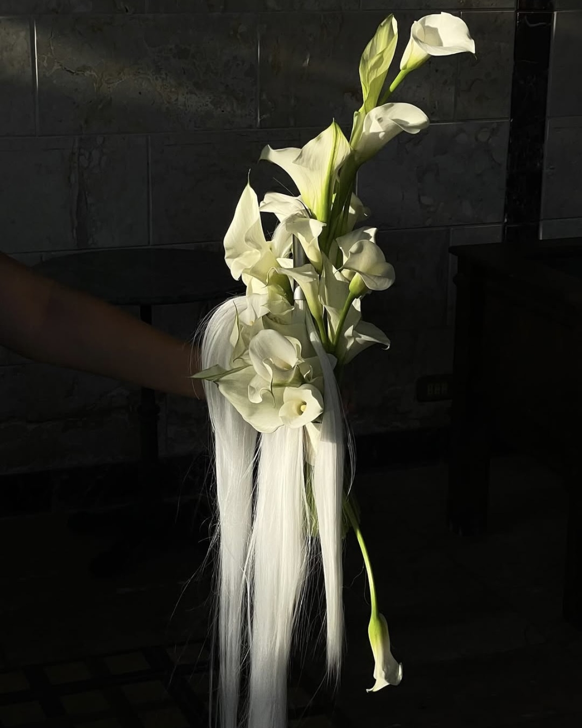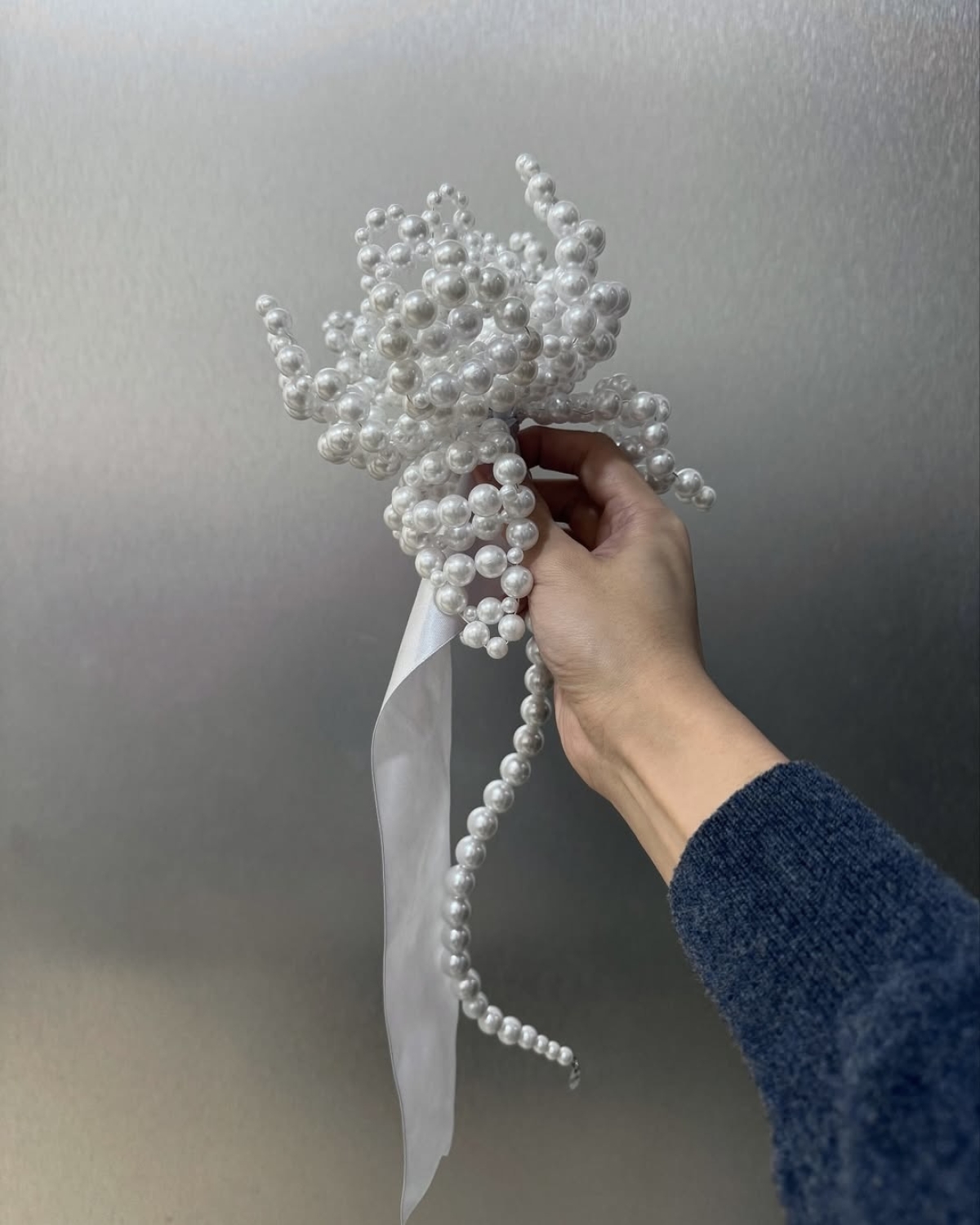 Бисерные и стеклянные букеты — это композиции, не предполагающие живых растений. Вместо них — один или несколько крупных цветков, созданных из бусин или закаленного стекла. Такие букеты начали вируситься у модной публики после показа Simone Rocha и наконец дошли и до свадеб. Их главное преимущество, — долговечность. Цветы не завянут и будут радовать глаз и через 5, и через 10, и через 20 лет. Кидать по традиции подружкам букет из бисера или стекла вряд ли получится, но вот оставить как семейную реликвию себе и передавать по наследству — точно да.