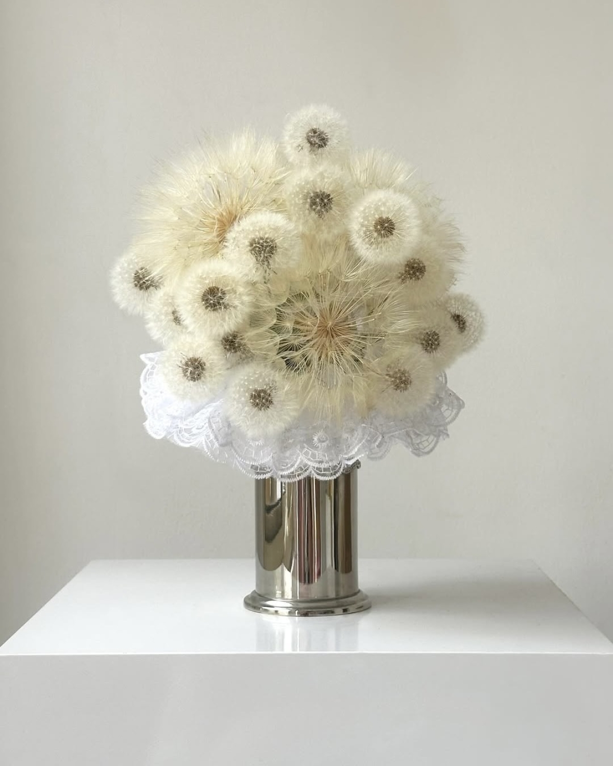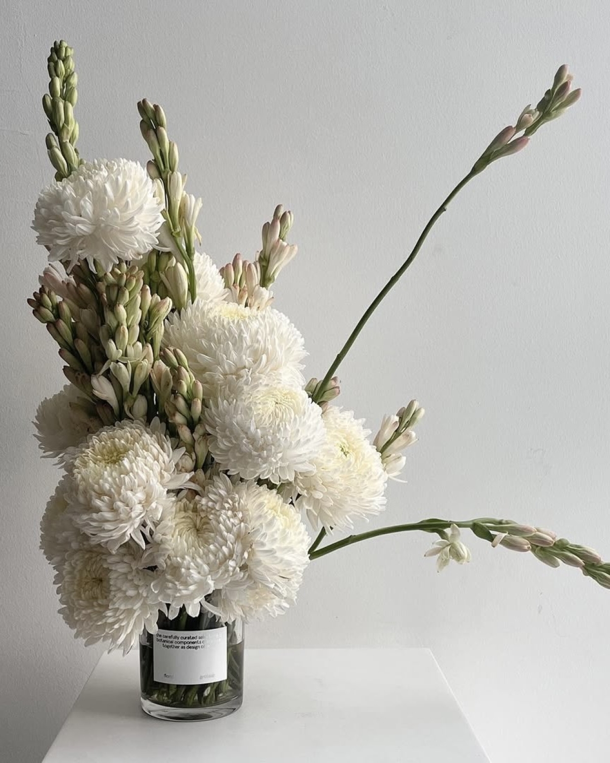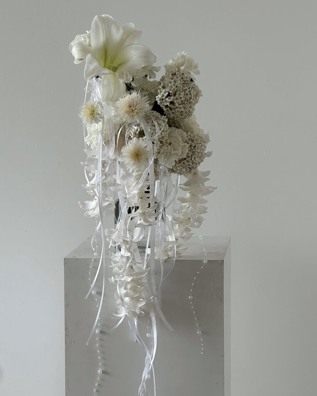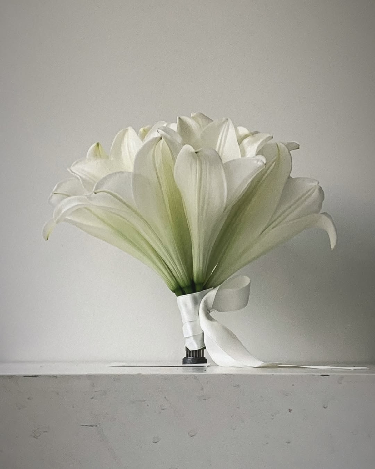 Total-White — букеты в светлых оттенках без намека на цвет. С одной стороны, это связано с трендом на традиционную палитру в свадьбах. С другой, — с главным цветом сезона 2026 по версии Pantone — Cloud Dancer, представляющим собой воздушный белый оттенок. Состав букетов при этом может быть любым, главное — сохранять светлую гамму и не переборщить с архитектурой.