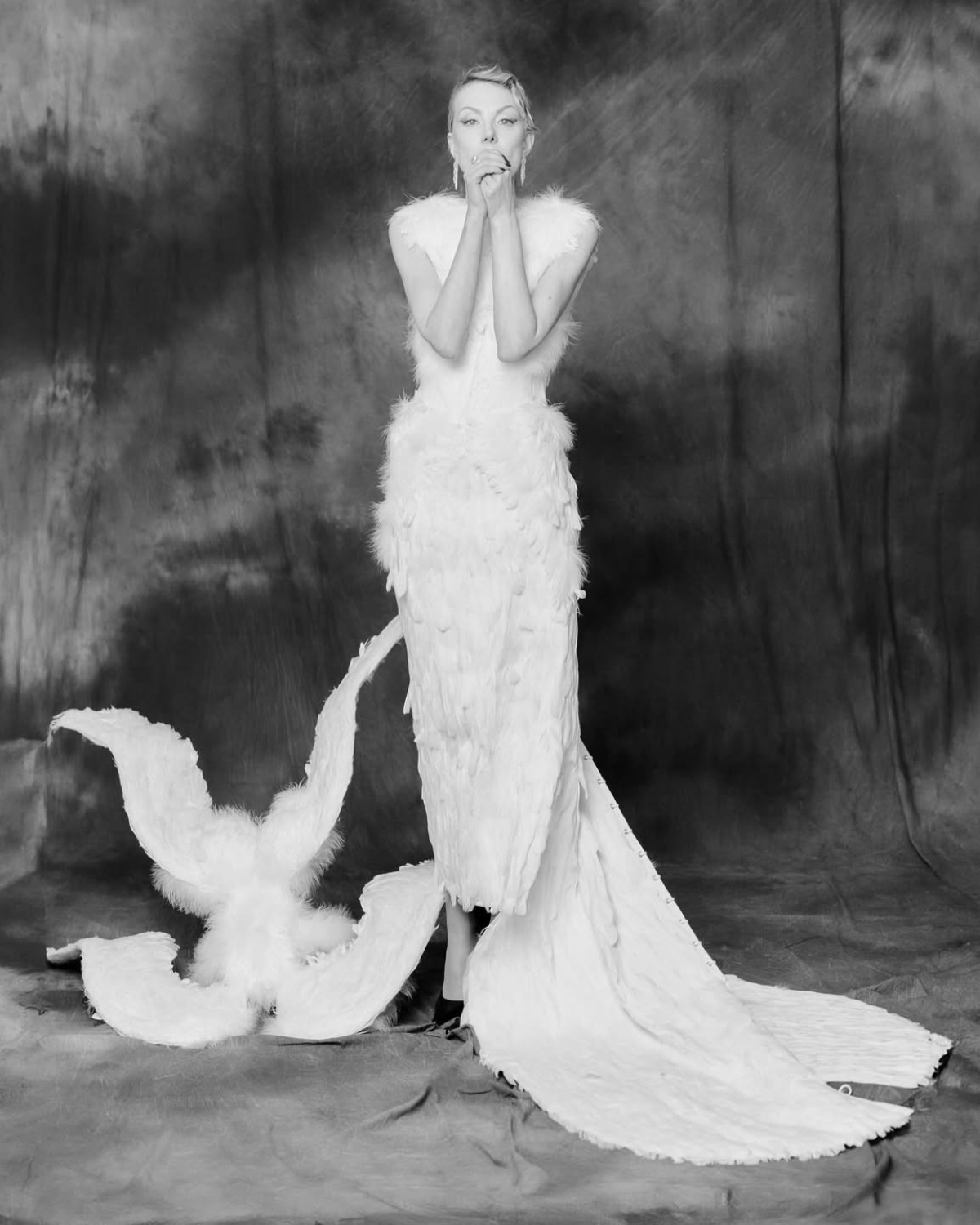 Эстетика рококо в 2026 станет еще более заметной. К корсетам и кринолинам добавятся юбки-трансформеры, обильная шнуровка не только по спине, но и по всей фигуре, кружевные оборки, ленты и объемный фантазийный декор. Апогеем тренда становятся перья и настоящие ангельские крылья, которые делают свадебное платье без малого произведением искусства.