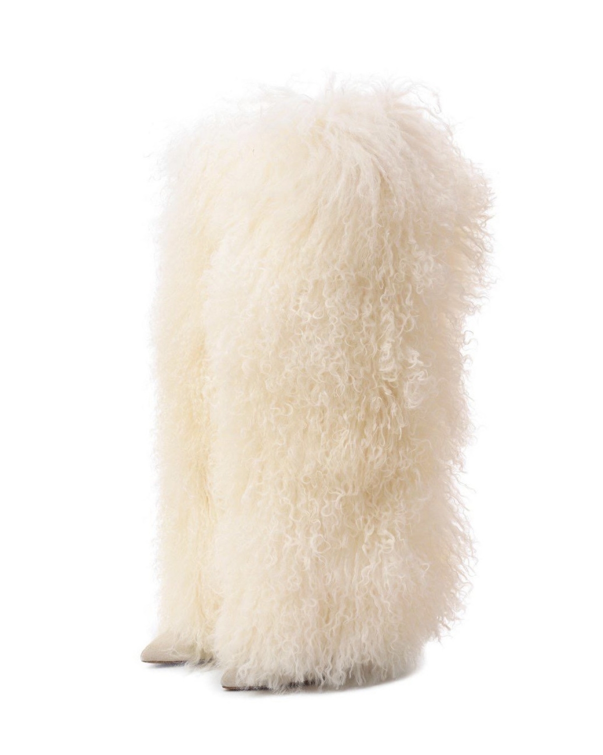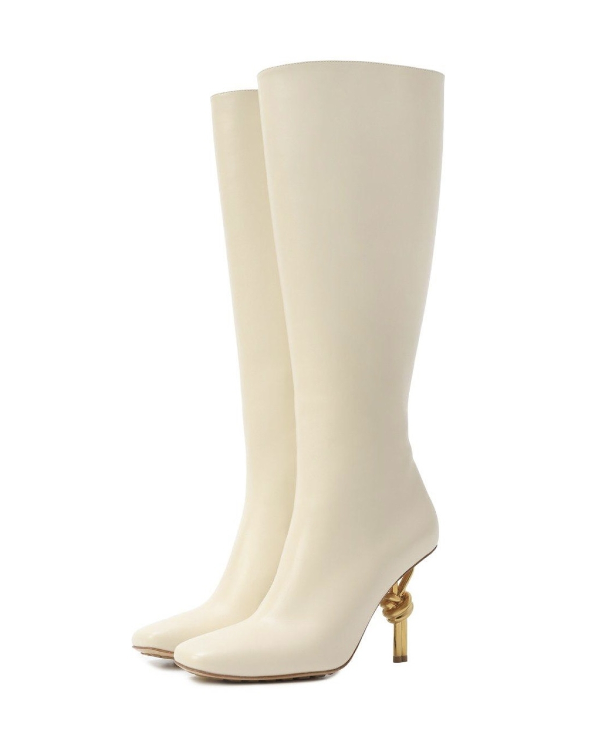 Кто сказал, что нарядными могут быть только туфли? Предлагаем включить в список модной обуви на выход в сезонах 2025–2026 еще и сапоги. Подойдут все те же лакированные, из нарядного текстиля или меха, с броской деталью или мерцающие. Они, кстати, будут здорово смотреться с комбинациями любой длины, пышными юбками и корсетами.