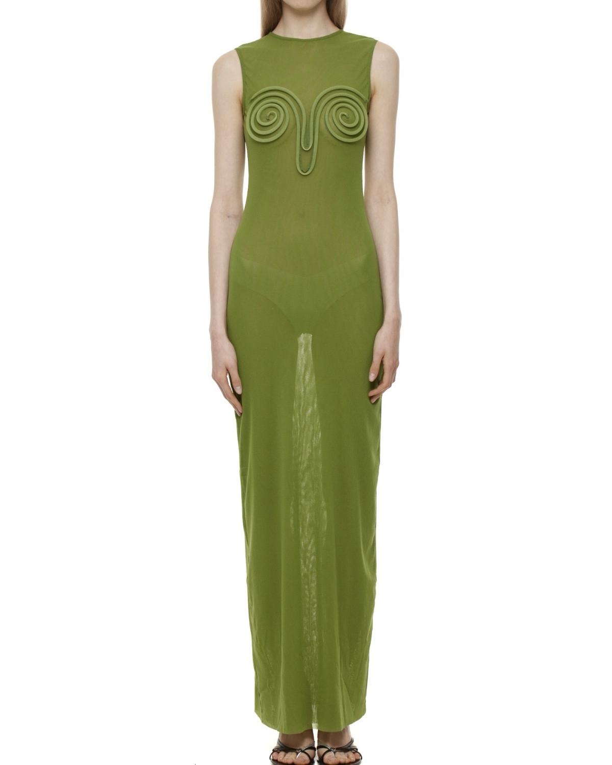 Платье Jean Paul Gaultier; мюли Gianvito Rossi