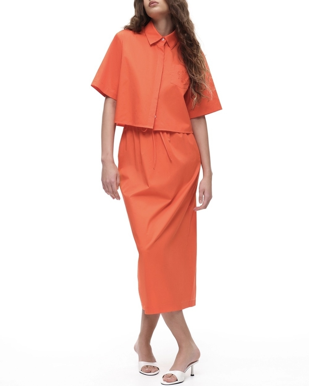 Если выделяться вам не в новинку, соберите монообраз из любимых оттенков: апельсинового, морковного, дынного, терракотового (который, кстати, перекликается и с красным), мангового и лососевого.