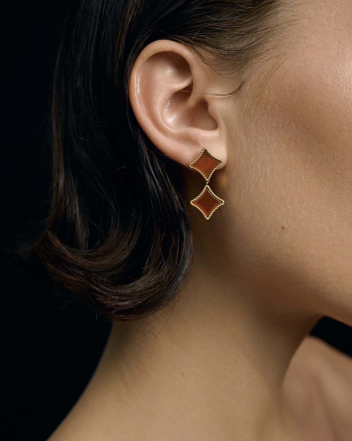 Для новогоднего образа 2026 лучше всего подойдет золото и натуральные камни теплых оттенков. Они усилят качества Красной Огненной Лошади и помогут раскрыть характер этого зверя.