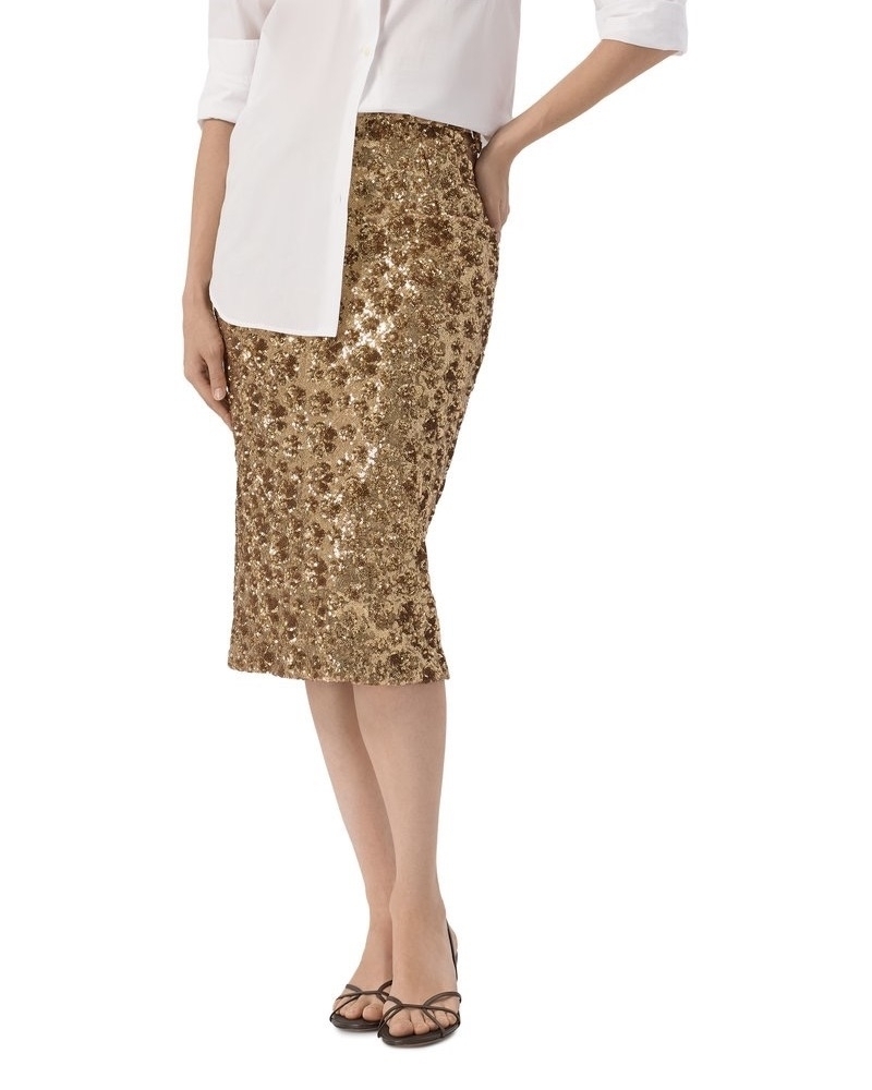 Золотой может быть акцентом и дополнять, например, красный, оранжевый, коричневый и зеленый. Для этого советуем присмотреться лишь к одному предмету гардероба: юбке, жакету или рубашке, платку или ремешку, сумке или босоножкам.