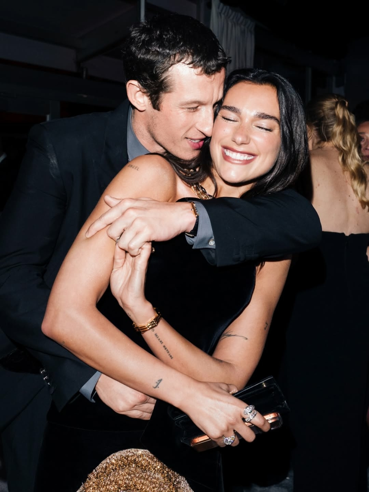 Среди ярких моментов — появление Тимоти Шаламе и Кайли Дженнер. Актер, номинированный на «Оскар» за фильм «Марти Великолепный», в этот вечер остался без статуэтки, но это не помешало паре продолжить праздновать на афтепати. На красной дорожке Vanity Fair Шаламе появился в том же белом костюме, что и на церемонии, только уже без галстука, а Дженнер сменила красное платье Schiaparelli, в котором была на «Оскаре», на эффектное черное платье McQueen с корсетным силуэтом и перьями на подоле.