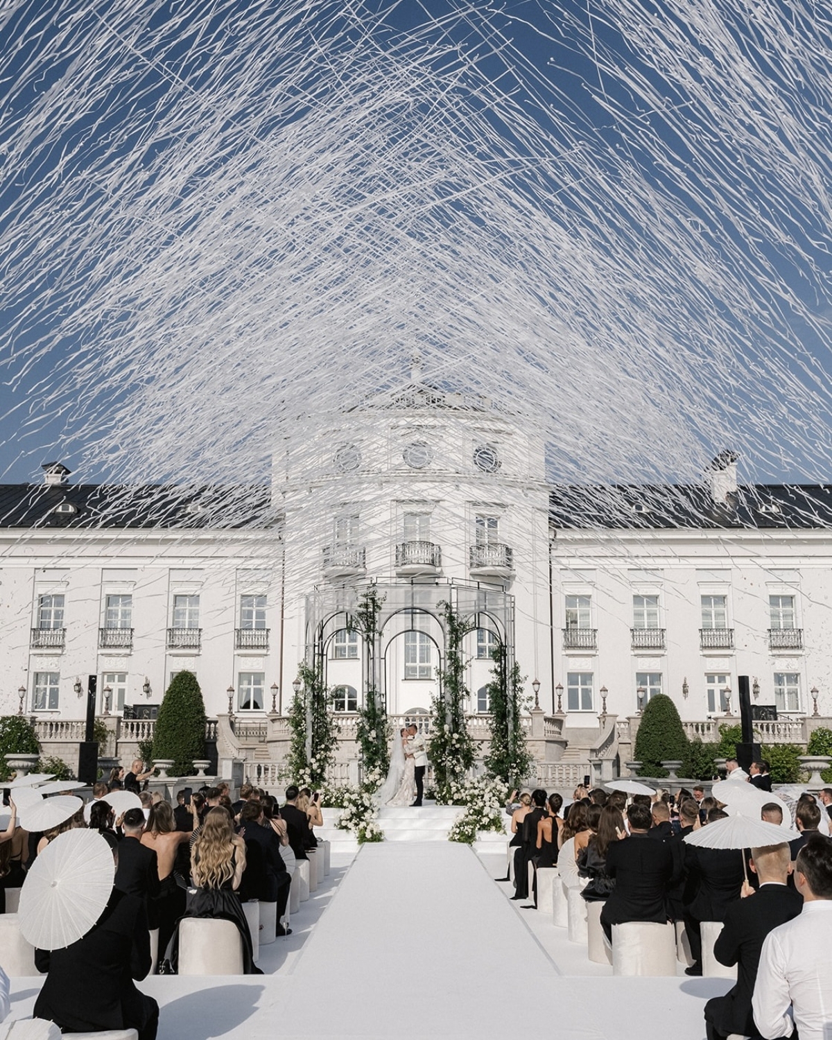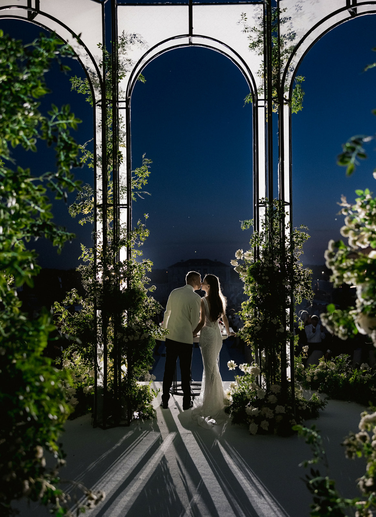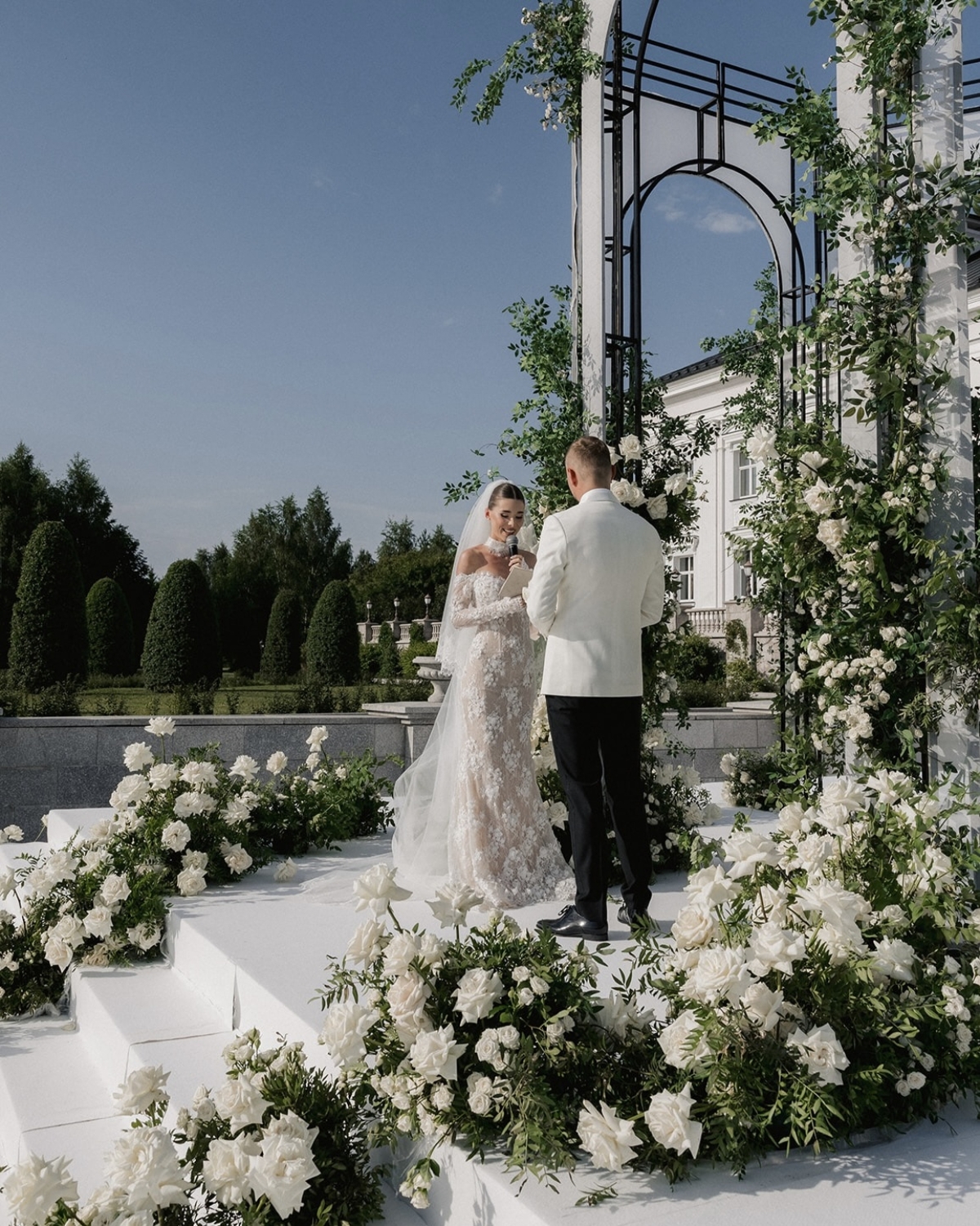 Главный визуальный акцент церемонии — вид на виллу и подиум с аркой из живых цветов, где Виктория и Сергей произносили слова любви. Эмоциональным акцентом стало появление рассказчика, который сел за белый рояль и, наигрывая нежную мелодию, поделился историей их отношений. А кульминацией стало облако белого серпантина, взмывшее в небо после первого поцелуя.