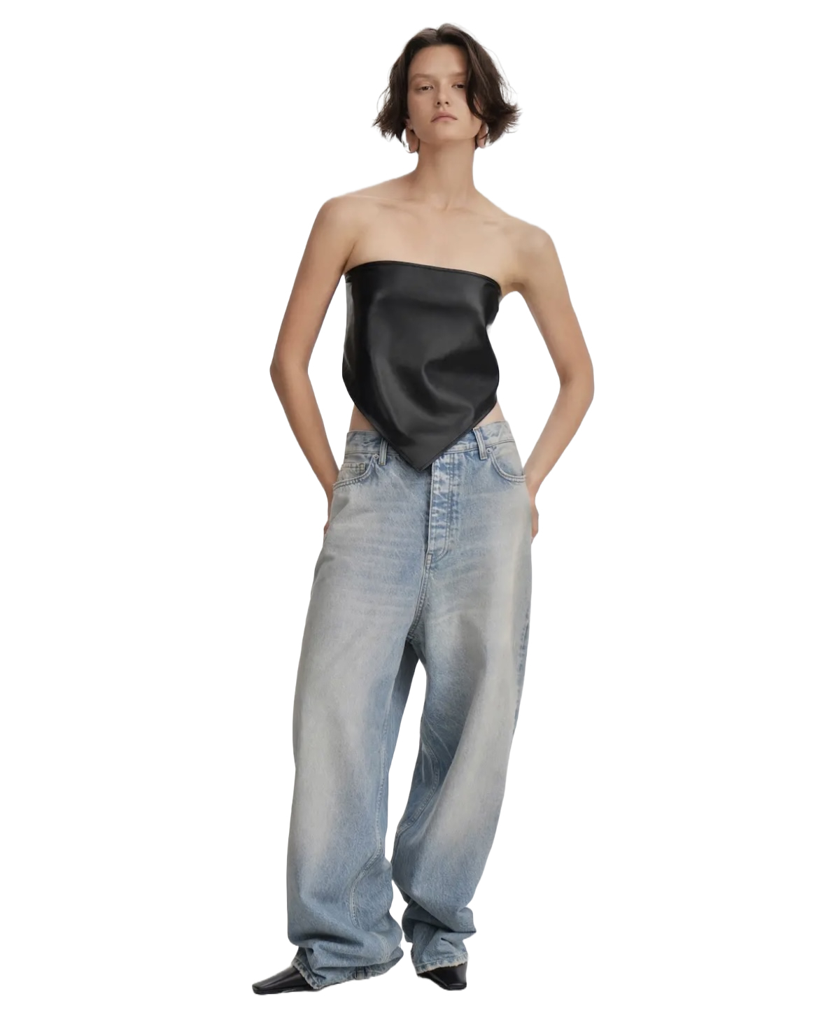 Кожаная топ-косынка Inna Pervert, круглая алебастровая лампа ZARA Home