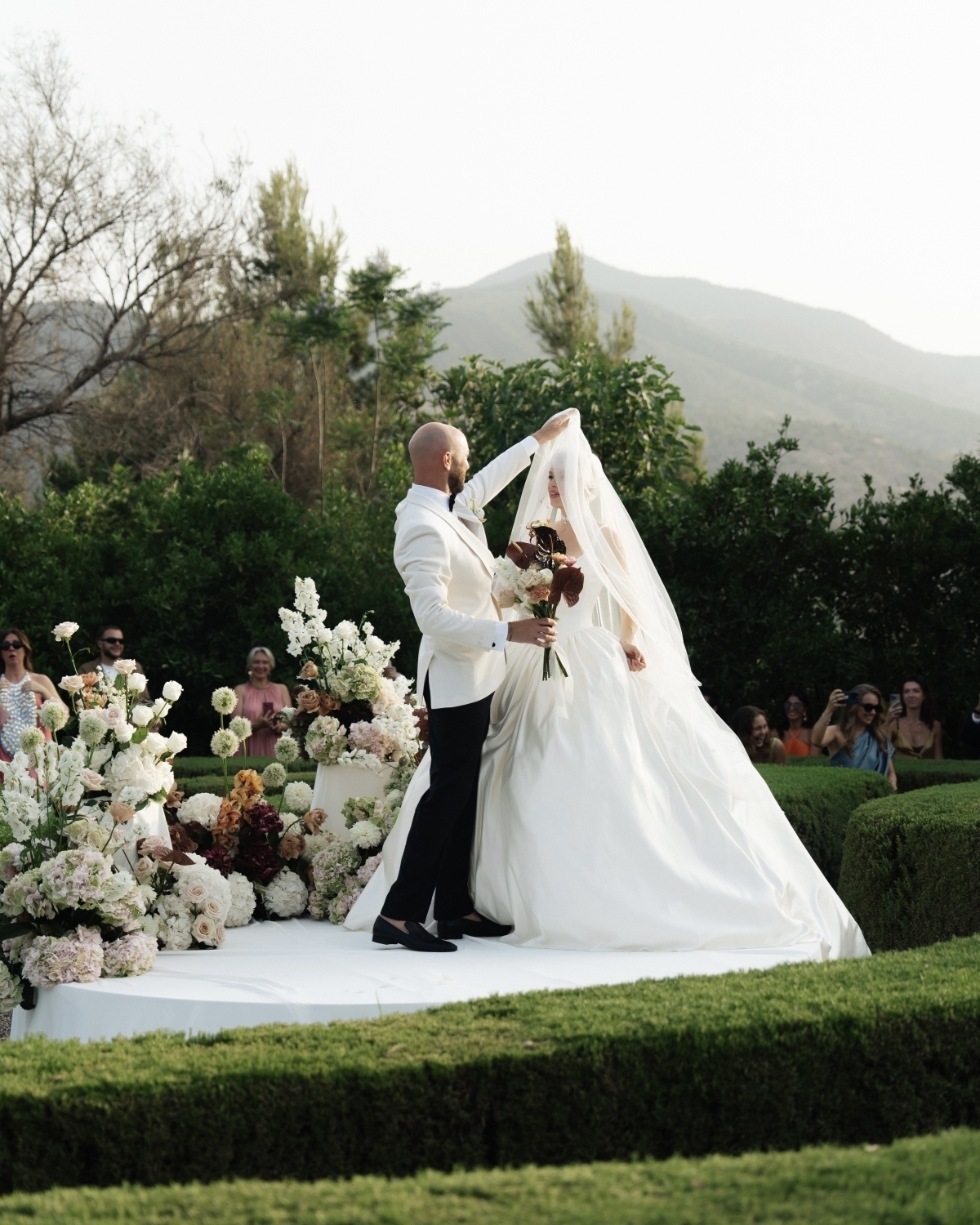 Среди гостей — Марго Робби, Самара Уивинг, Эйса Гонсалес, Нина Добрев и давняя подруга невесты Клэр Холт. Меню вечера соединило французскую гастрономию и современную нью-йоркскую кухню, а финалом стала подача многоярусных тортов в форме лебедей от Paris Starn.