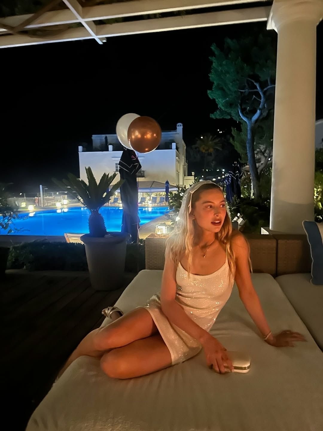 Вторая, основная часть праздника прошла 13 сентября на вилле Tonnara di Scopello на побережье Сицилии. Невеста появилась в платье Danielle Frankel, созданном специально для нее: полупрозрачный шифон, встроенный корсет, органзовые «лепестки» и жемчужные акценты. Вечер завершился музыкальной вечеринкой с живыми сетами друзей-музыкантов, включая Троя Сивана. Атмосфера соединила эстетику итальянской киноэпохи 60-х и современный поп-гламур.