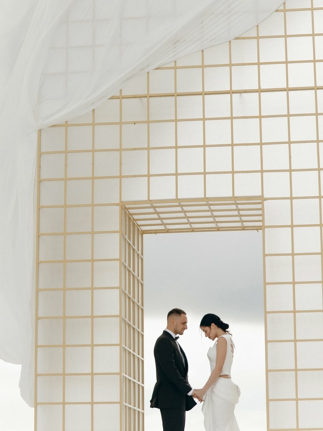 В декоре использовали легкие ткани, лаконичные бутоны белых роз и контент с отсылками к истории пары, который стал частью общей композиции. За организацию отвечала команда Bonweddings, собрав сильный состав участников TOP15MOSCOW: фотограф Павел Голубничий, бьюти-стилист Оксана Сараева, видеограф Дмитрий Крылов и диджей Никита Меньшов.