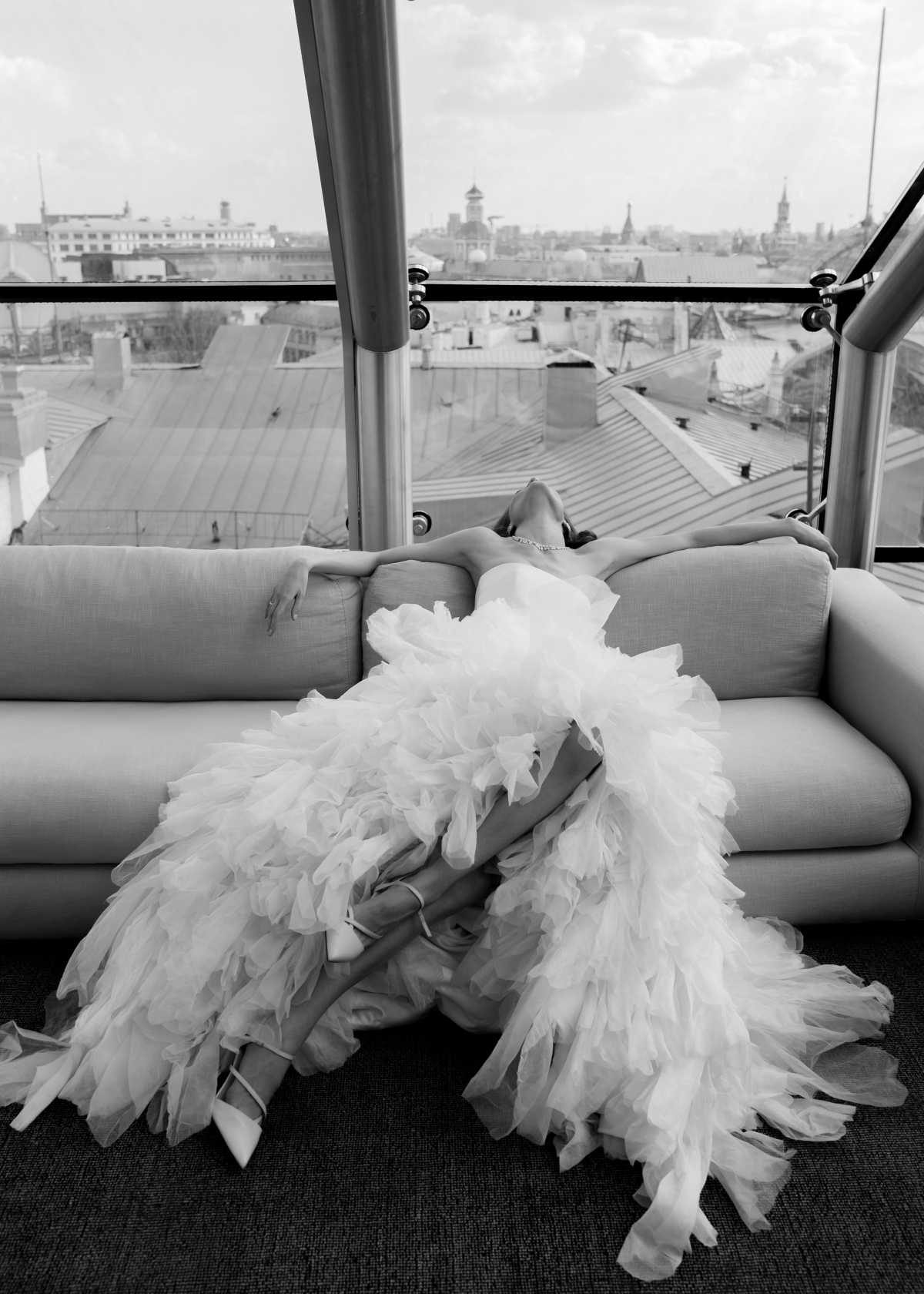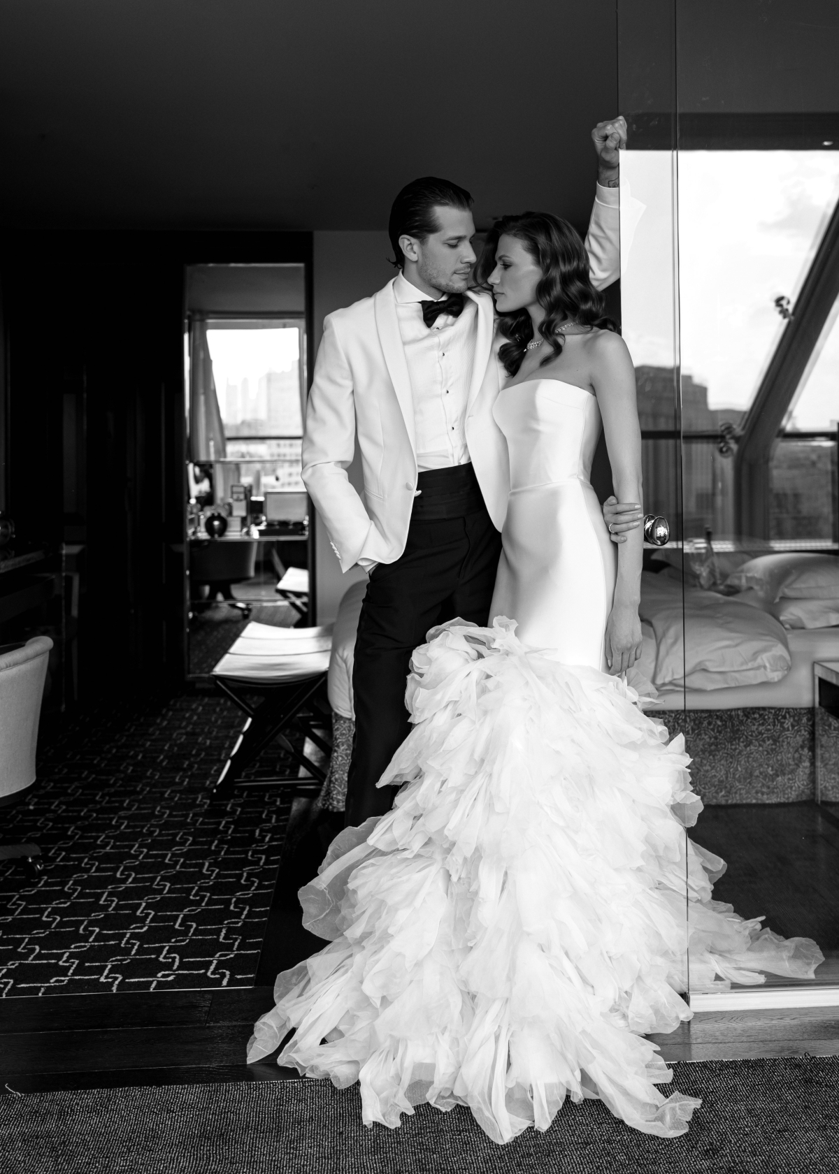 Добро пожаловать в эффектный двухуровневый Penthouse Suite площадью 180 м². Люкс представляет собой элегантный оазис, расположенный в самом сердце города. В номере есть обеденная зона на 6 персон, просторная спальня, ванна из итальянского мрамора с гидромассажем. Из окон номера и ванной комнаты открывается великолепный вид на центр Москвы с эксклюзивной точки обзора. Двухуровневый Penthouse Suite станет удобной и функциональной площадкой как для вашей подготовки к торжеству или фотосессии, так и для фуршета или камерного ужина.