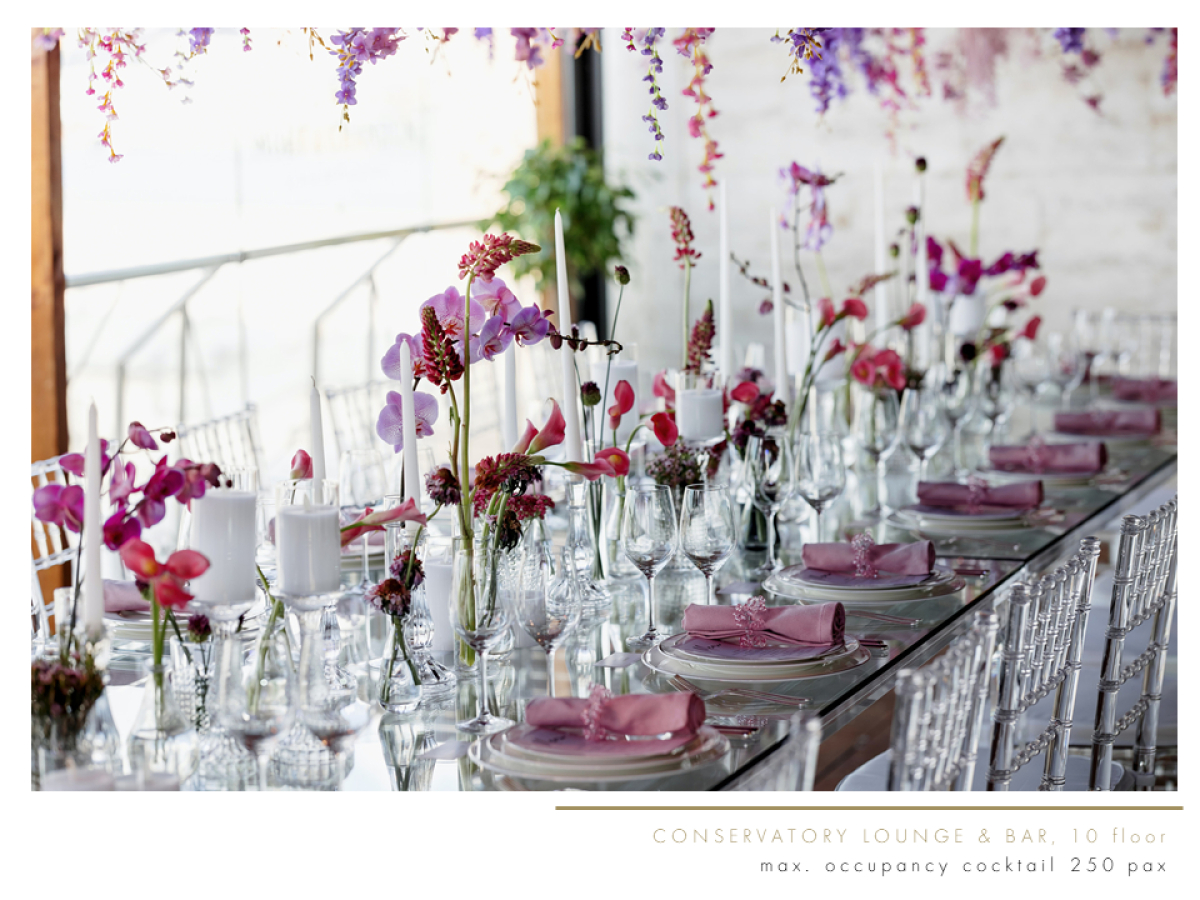 За интерьеры отеля отвечал легендарный дизайнер Тони Чи, создавший шикарный облик стеклянного атриума и бара «Консерватория», а также 202 номера, среди которых 30 люксов. Люкс «Зимний сад с террасой» — прекрасное место для того, чтобы красиво начать утро свадебного дня, а «Президентский» и «Пентхаус» станут идеальным выбором для девичника или мальчишника.