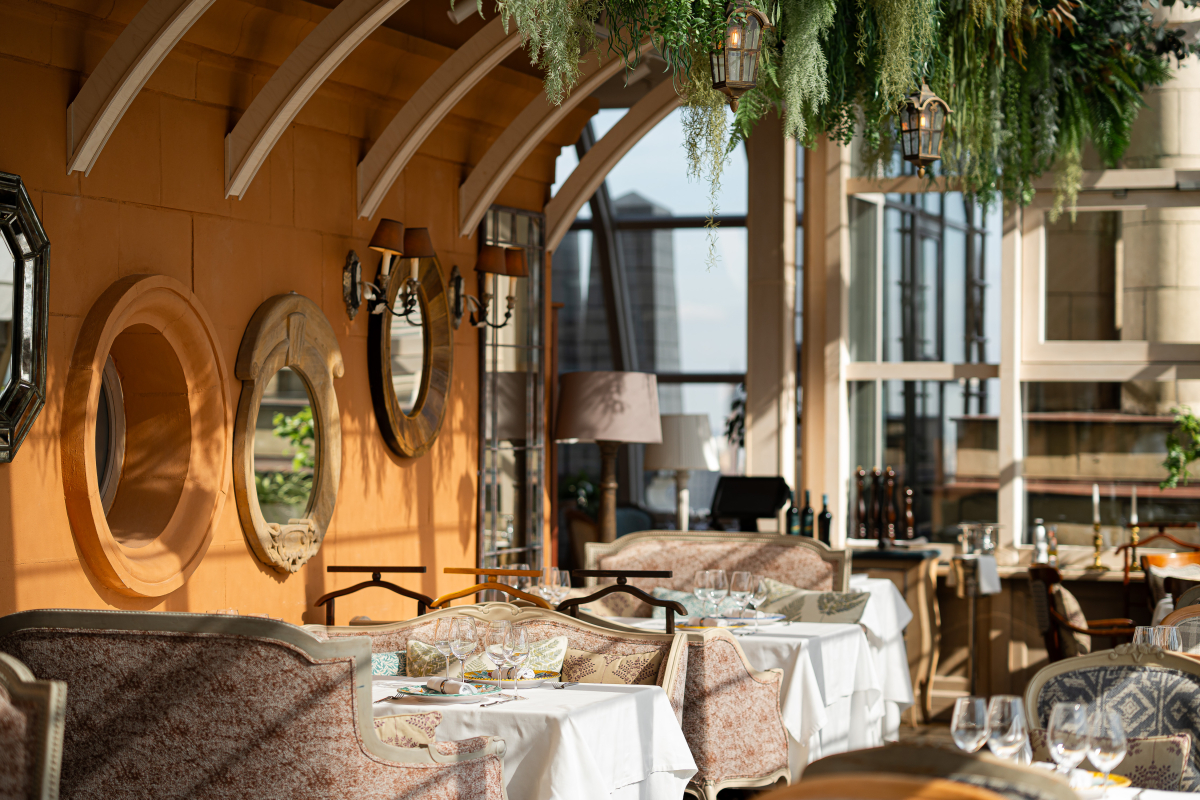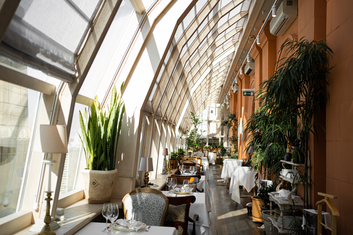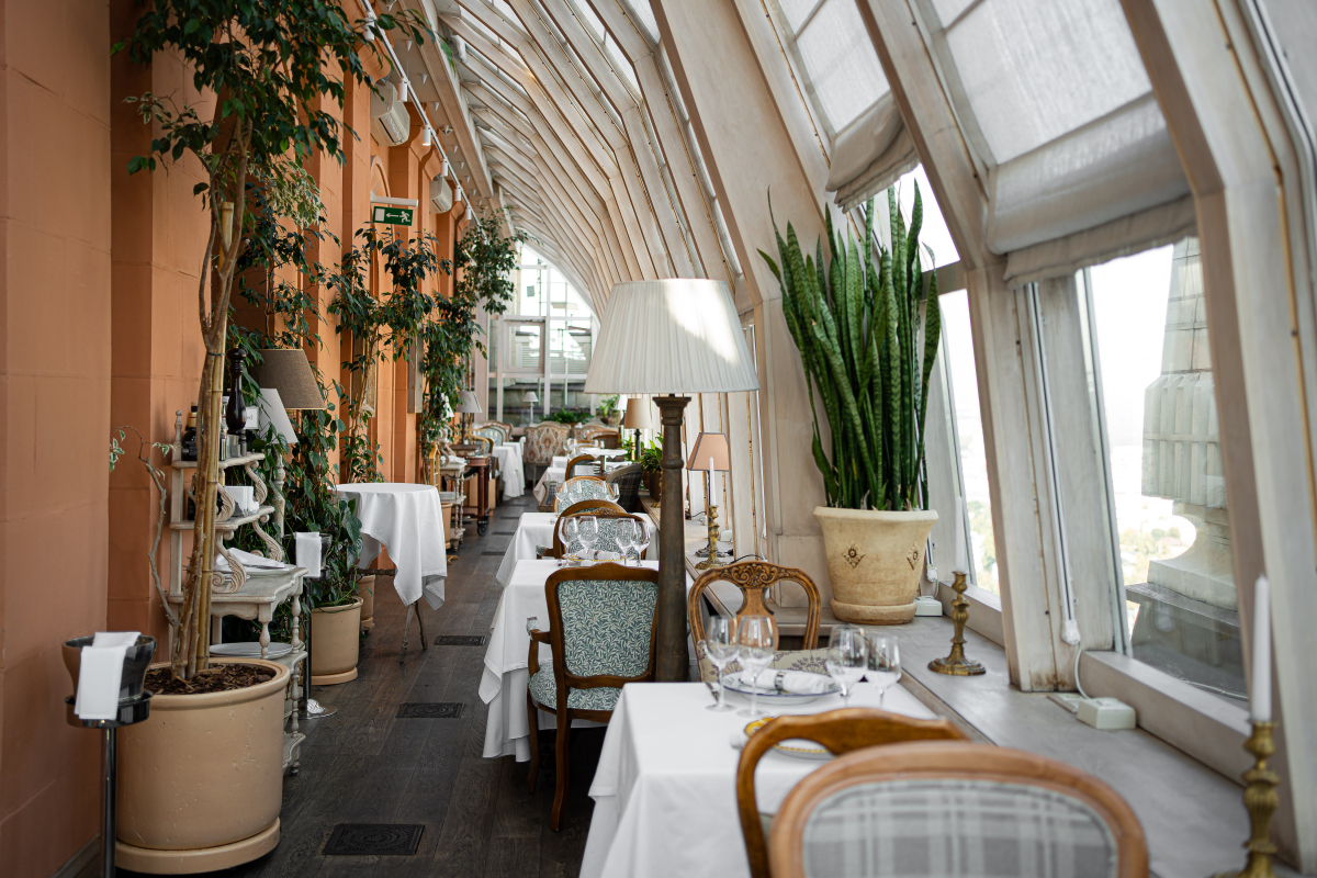 Воздушная элегантность Сердце ресторана - просторный зал на 29-м этаже, где мраморные ступени с красными ковровыми дорожками ведут к зеркалам в позолоченных рамах, а над гостями сияет хрустальная люстра. Но главная драгоценность BUONO - четыре видовые террасы, парящие на высоте 120 метров: - две просторные, с панорамой на Воробьевы горы, Трехгорную мануфактуру и Останкинскую башню, - две уютные, с камерной атмосферой и зелеными оазисами под открытым небом. Пространство 32-го и 33-го этажей Radisson Collection Hotel, Moscow занимают два караоке-зала с не менее живописными видами на город и профессиональным бэк-вокалом.