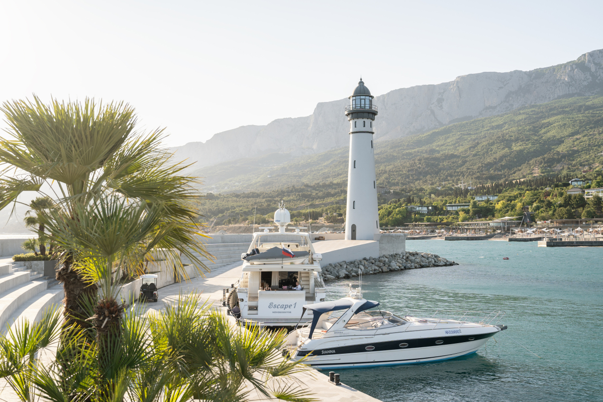 Впечатляющий масштабами комплекс раскинулся на 64 га территории и включает в себя пятизвездочный отель, 37 вилл, собственную яхтенную марину и маяк, более 10 ресторанов разных кухонь мира, спа-центр с термальным комплексом, бассейны, первый в России Центр винного туризма WINEPARK, Японский сад, медицинский центр, собственный пляж.