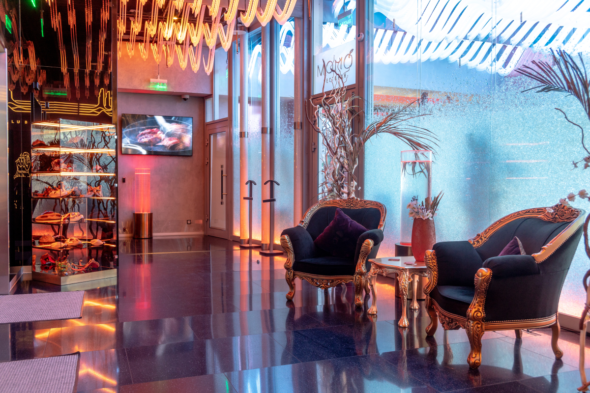 - Арт-объекты и эксклюзивный интерьер вип-зала с проекционной стеной