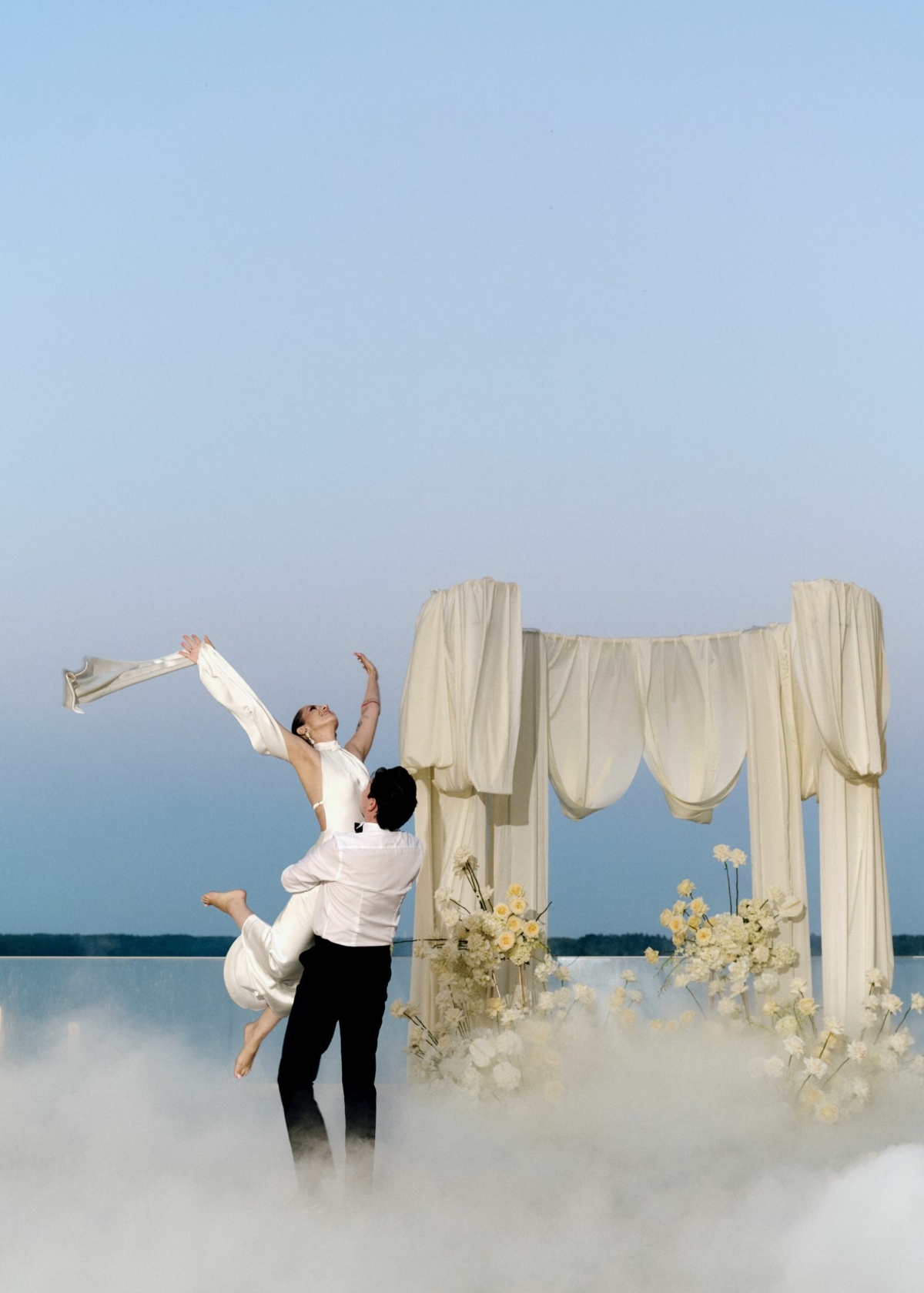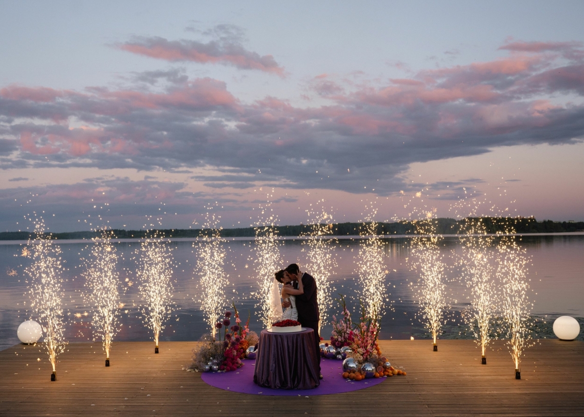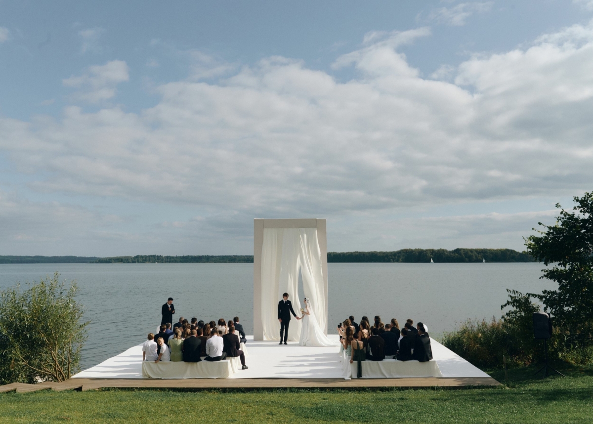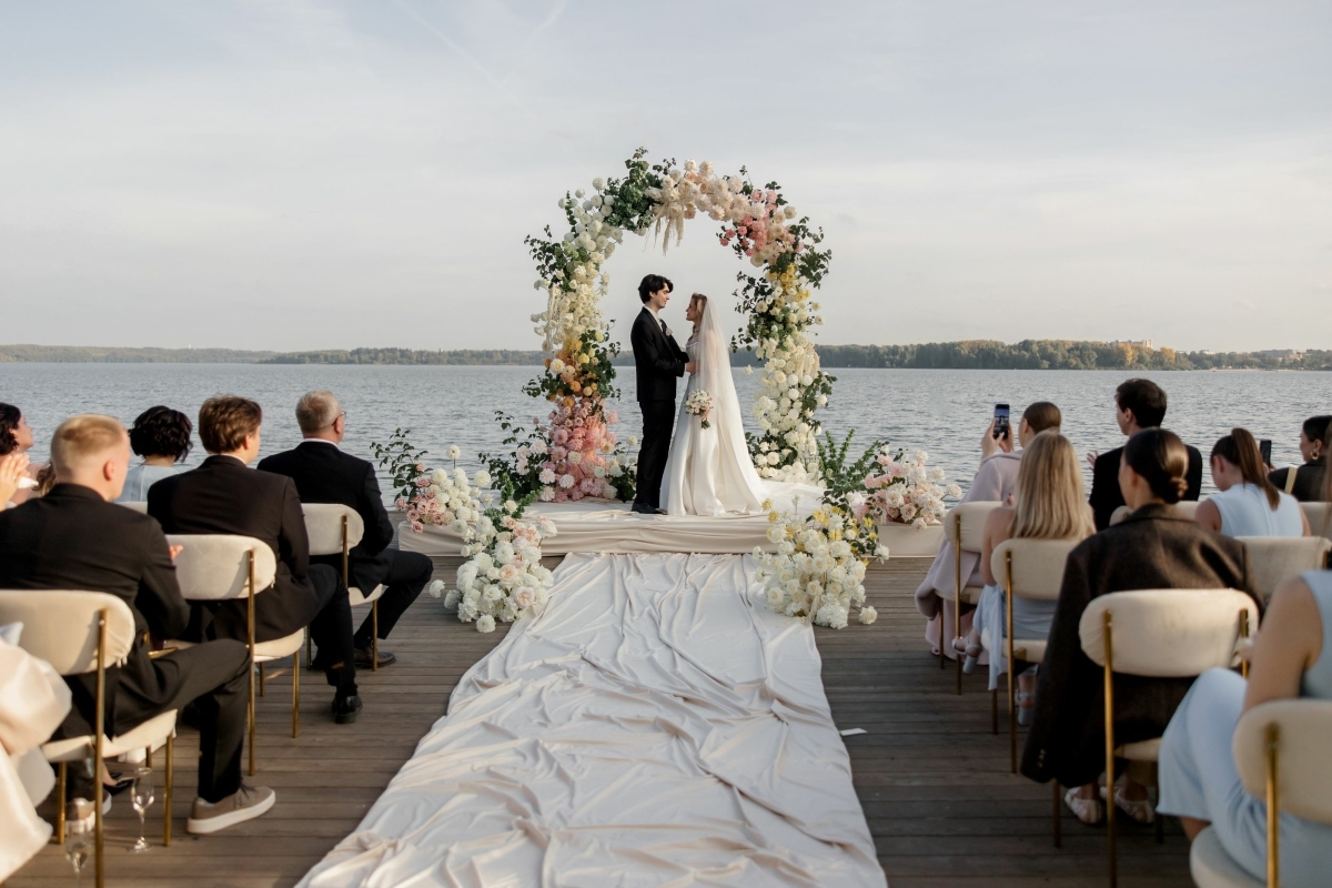 - Парящий над гладью озера пирс для выездной церемонии. Официальная регистрация