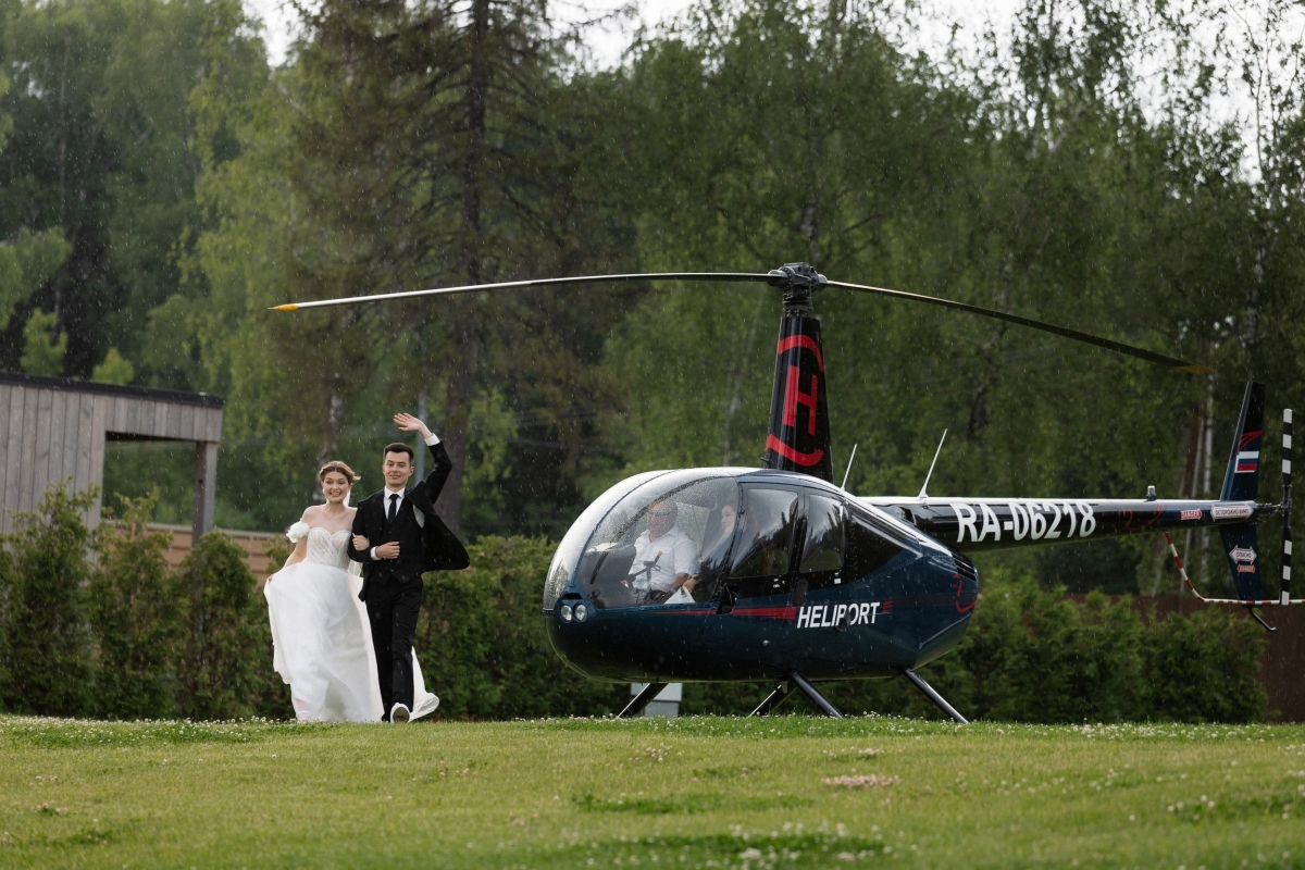 - Эффектное появление на вертолете прямо к выездной церемонии